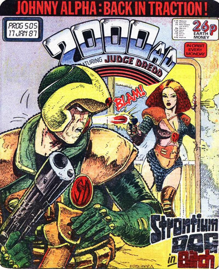 Actif principalement sur le marché de la bande-dessinée anglaise depuis le début des années 70, Carlos Ezquerra avait croisé le chemin de Pat Mills, John Wagner et Gerry Finley-Day tout en spécialisant dans des récits de guerre. En 1977, il se voit confier la mission de designer l’apparence d’un flic futuriste, le Judge Dredd, appelé à devenir la star de la revue 2000 AD. Mais des désaccords internes font que l’équipe créative quitte le titre avant le premier numéro. Ezquerra, à l’origine de l’esthétique du strip, y reviendra cependant rapidement (en particulier à partir de 1982). En 1978, John Wagner et Carlos Ezquerra créé une autre référence de la BD anglaise de science-fiction, le héros Strontium Dog, qui finira par être incorporé à son tour dans 2000 AD. L’artiste a travaillé aussi bien avec Mark Millar (Purgatory) que Grant Morrison (Janus: Psi-Division).