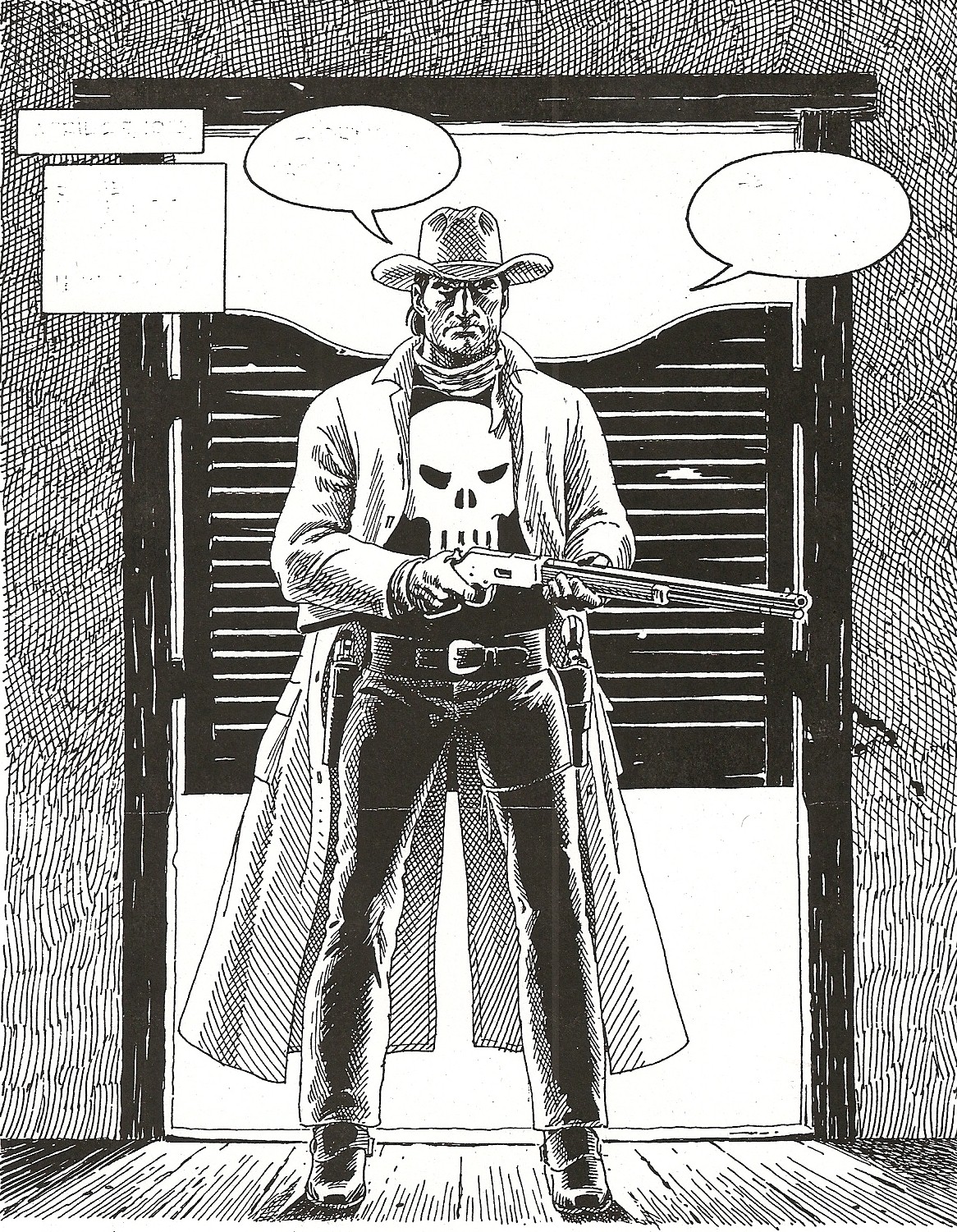 Vu comme un spécialiste de l’ambiance de la Seconde Guerre Mondiale, c’est à lui que Disney fait appel pour dessiner… le Rocketeer. Ou plus exactement l’album de BD inspiré du film Disney lui-même inspiré du comic-book de Dave Stevens. Le dessinateur ne revient qu’en 1993 chez DC Comics où il dessine tout un arc de Legends of The Dark Knight, ce qui reste sans doute son projet le plus super-héroïque (quand bien même Batman appartient au même monde urbain que Moon Knight). Respecté par ses pairs et par les artistes qui sont arrivés après lui dans les comics, Russ Heath se voit invité par Frank Miller à dessiner une page de Sin City. Heath fait son autoportrait face à une mort certaine, alors qu’une des filles de Sin City s’apprête à le tuer.