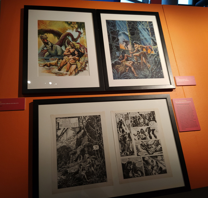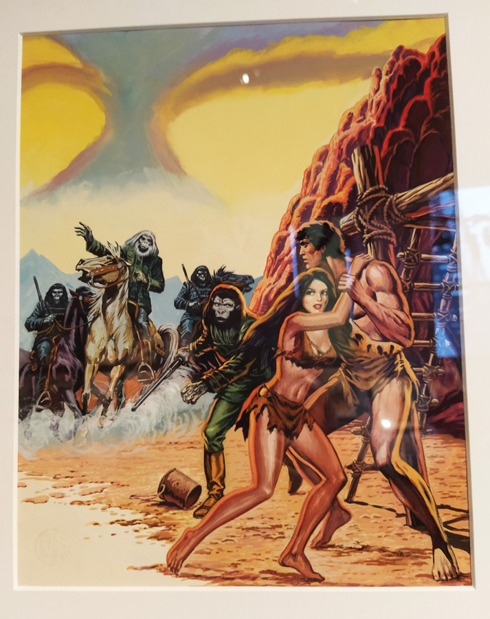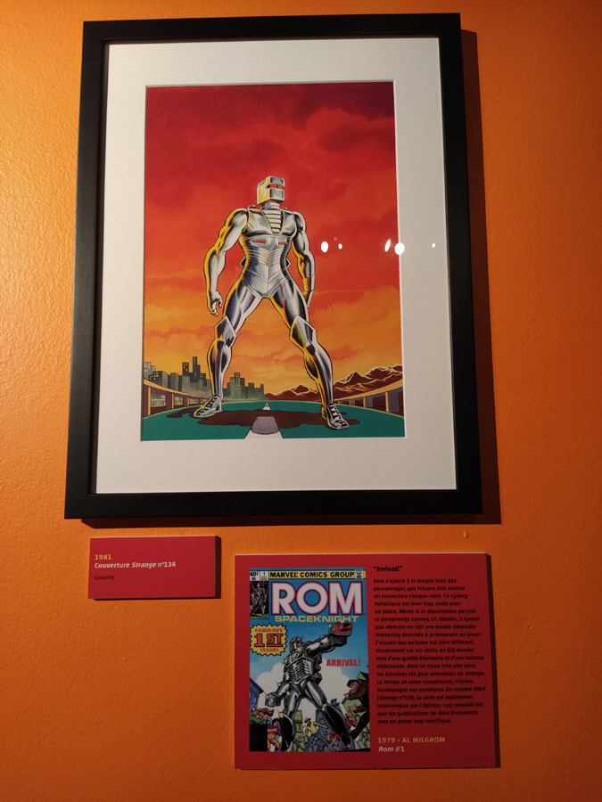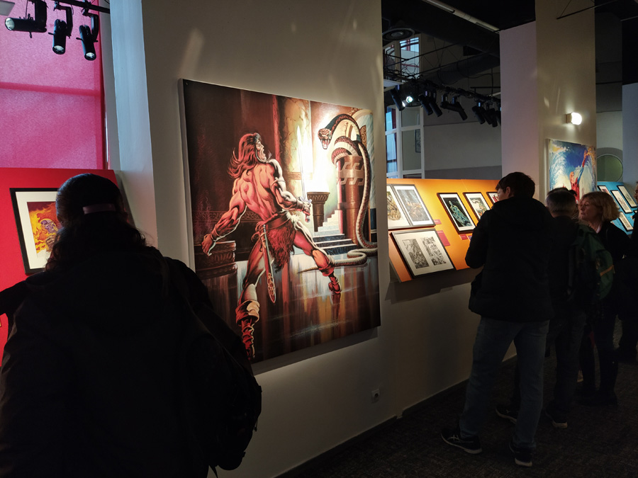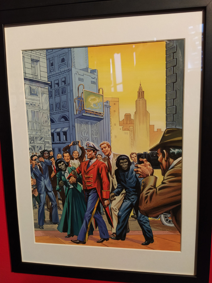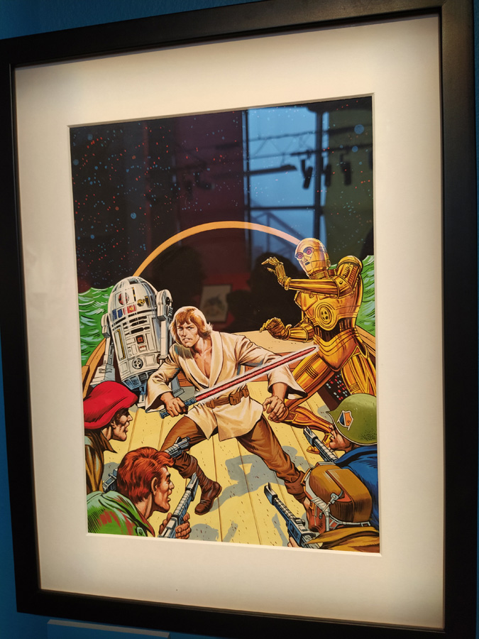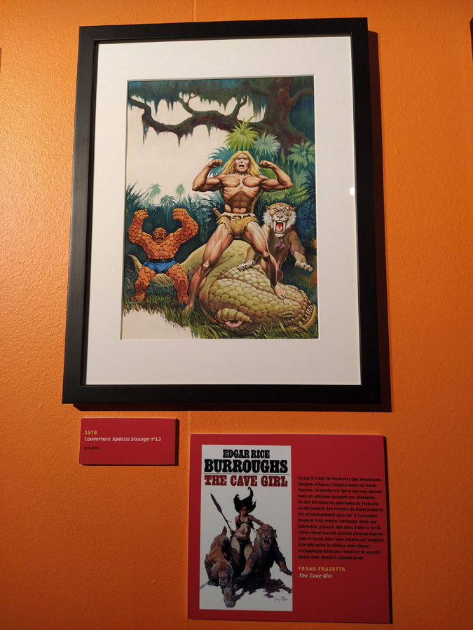 L’exposition, concrétisée en 2020, est magnifique. Reprenant les débuts de l’artiste et l’époque où Frisano réalisait des pages de BD, elle prend en compte ses premières couvertures (pas peintes mais tracées) pour des revues comme le Fantôme ou Mandrake. Et puis allégrement on glisse vers ses Tarzan puis vers les affiches de cinéma qu’il a réalisé dans un style ultraréaliste, pour des films mettant en vedette Burt Lancaster ou Clark Gable. Mais il faut dire ce qui est, la plus grande partie de l’expo reposait sur l’époque où Frisano a peint « du Marvel » et tout ce que l’éditeur américain représentait à l’époque, par extension en dehors de l’univers Marvel stricto-sensu. C’est à dire aussi Star Wars, Conan où Doc Savage.