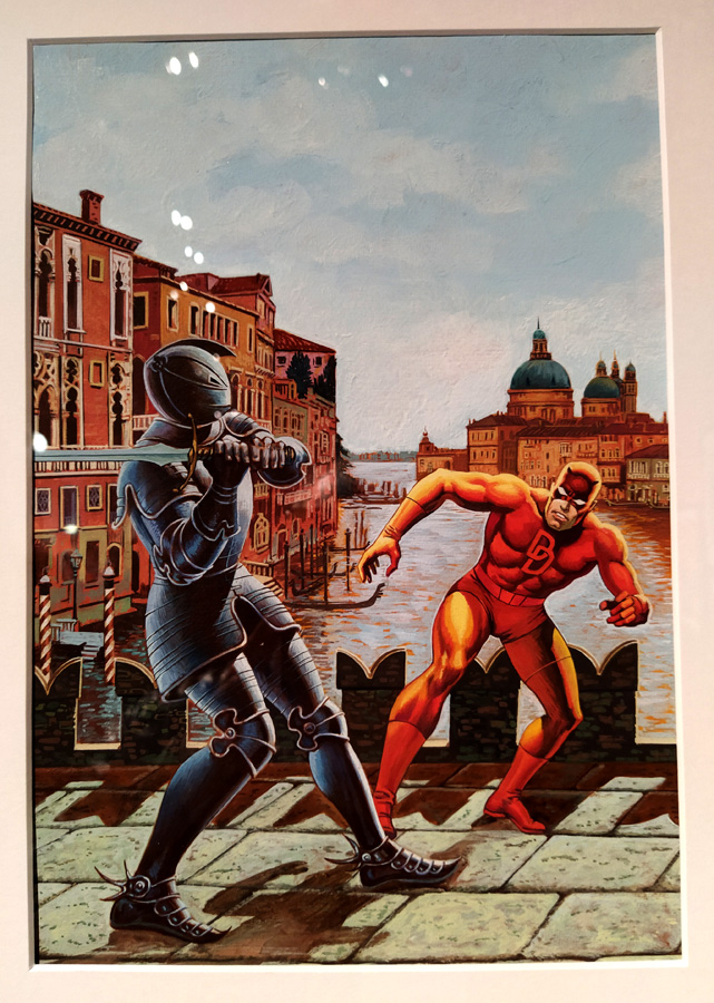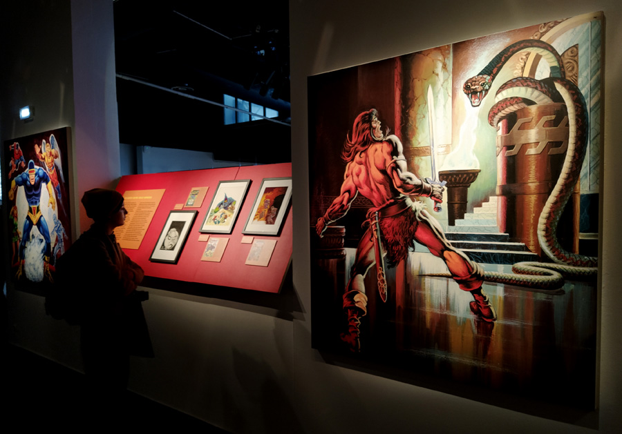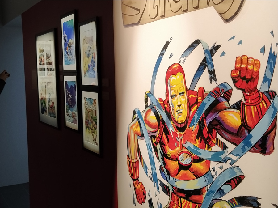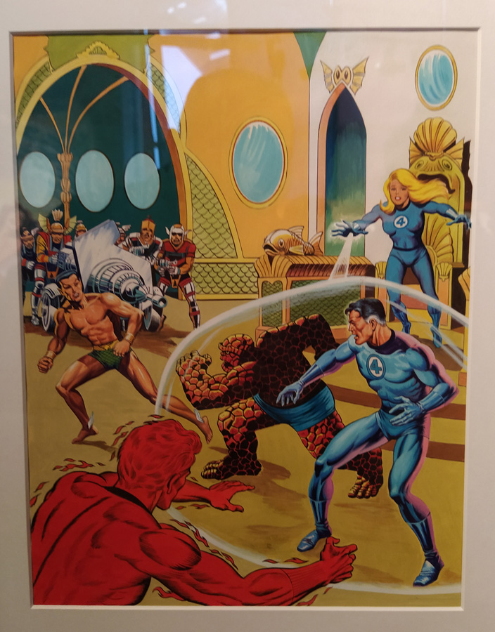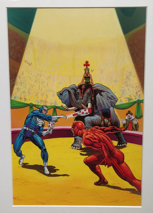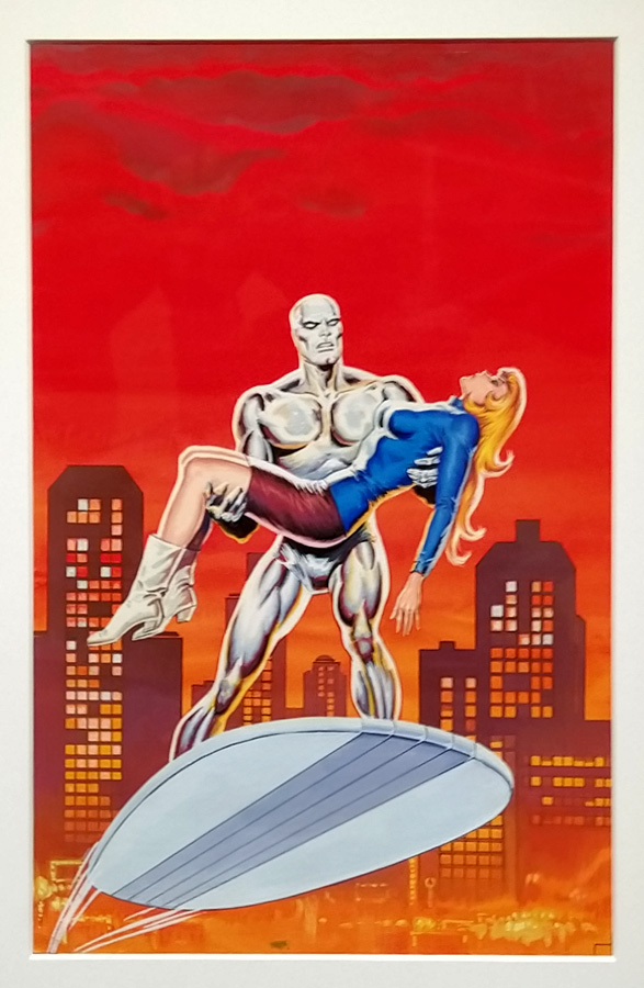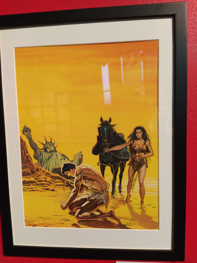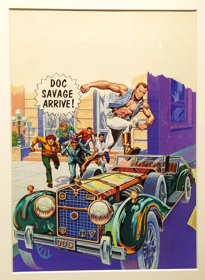 L’exposition, concrétisée en 2020, est magnifique. Reprenant les débuts de l’artiste et l’époque où Frisano réalisait des pages de BD, elle prend en compte ses premières couvertures (pas peintes mais tracées) pour des revues comme le Fantôme ou Mandrake. Et puis allégrement on glisse vers ses Tarzan puis vers les affiches de cinéma qu’il a réalisé dans un style ultraréaliste, pour des films mettant en vedette Burt Lancaster ou Clark Gable. Mais il faut dire ce qui est, la plus grande partie de l’expo reposait sur l’époque où Frisano a peint « du Marvel » et tout ce que l’éditeur américain représentait à l’époque, par extension en dehors de l’univers Marvel stricto-sensu. C’est à dire aussi Star Wars, Conan où Doc Savage.
