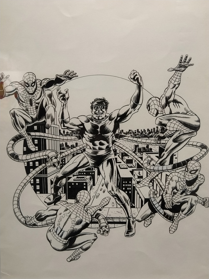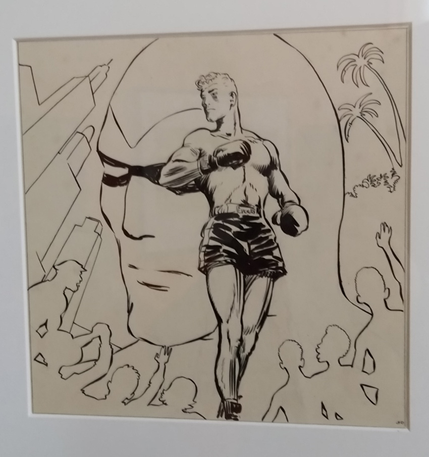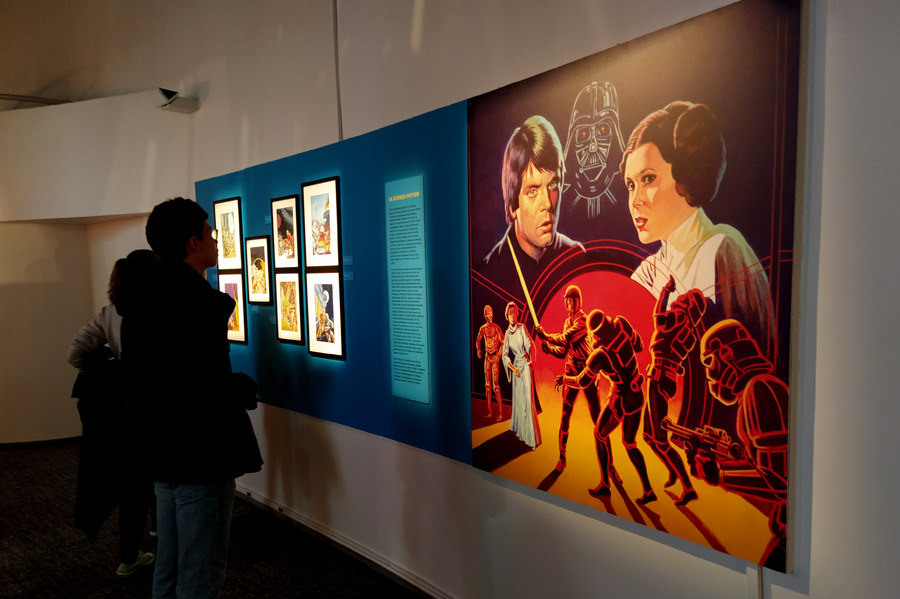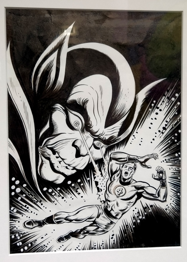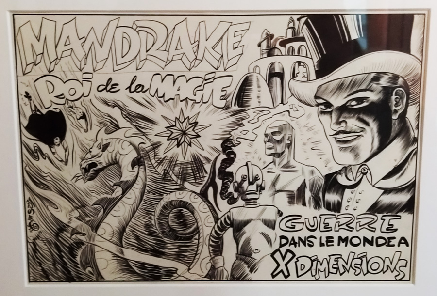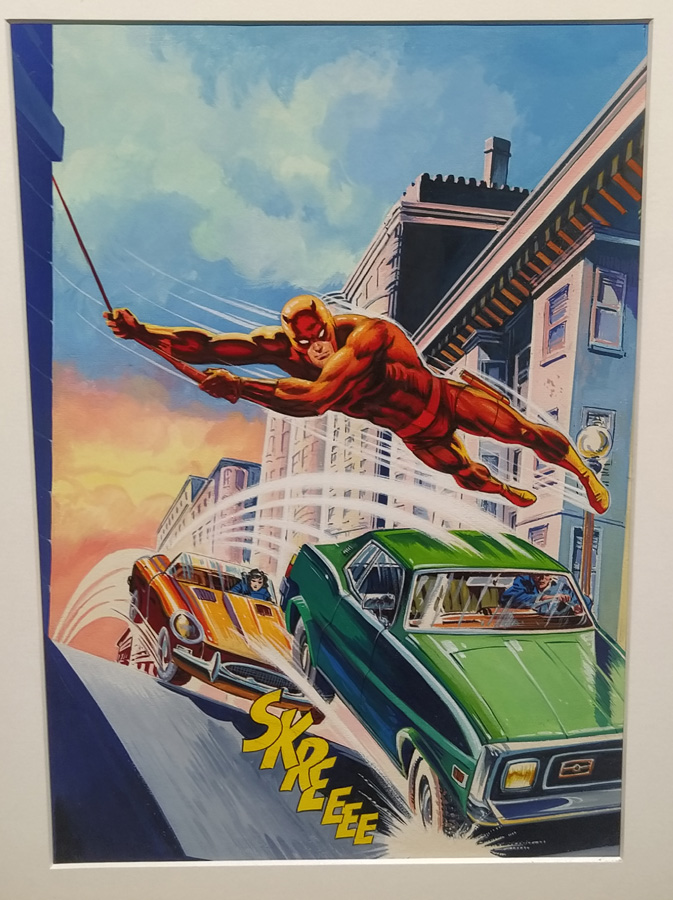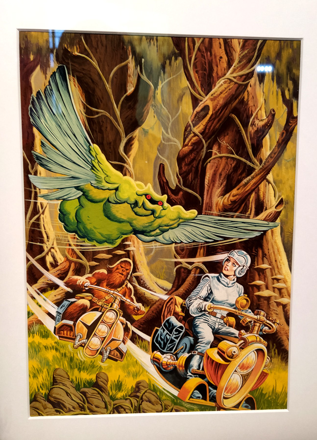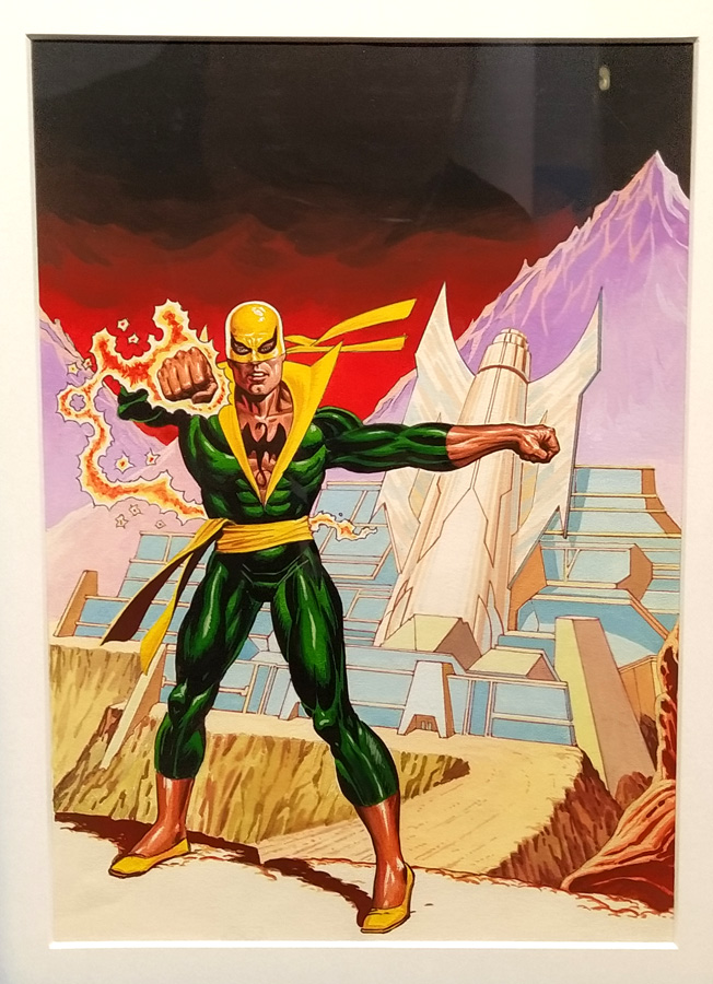 L’exposition, concrétisée en 2020, est magnifique. Reprenant les débuts de l’artiste et l’époque où Frisano réalisait des pages de BD, elle prend en compte ses premières couvertures (pas peintes mais tracées) pour des revues comme le Fantôme ou Mandrake. Et puis allégrement on glisse vers ses Tarzan puis vers les affiches de cinéma qu’il a réalisé dans un style ultraréaliste, pour des films mettant en vedette Burt Lancaster ou Clark Gable. Mais il faut dire ce qui est, la plus grande partie de l’expo reposait sur l’époque où Frisano a peint « du Marvel » et tout ce que l’éditeur américain représentait à l’époque, par extension en dehors de l’univers Marvel stricto-sensu. C’est à dire aussi Star Wars, Conan où Doc Savage.