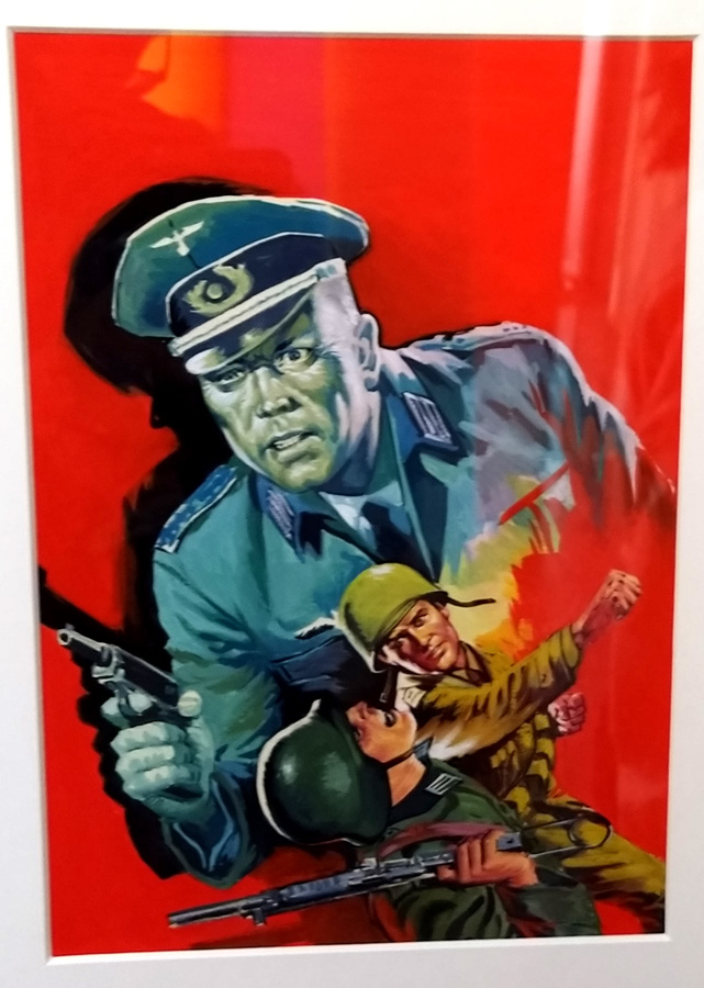 On regrettera cependant un seul petit défaut, source de malentendu (ou de déformations de la part des journaux concernés, disons-le) ces derniers jours dans divers médias. Par manque de place (on ne peut pas résumer pas la carrière d’un grand artiste en quelques murs de texte, c’est bien compréhensible) et parce que c’est une exposition Frisano et pas Lug à proprement parler, l’impression donnée peut-être que Frisano a tout fait, du sol au plafond, qu’il a imposé Marvel à lui tout seul et même forcé un éditeur timoré (Lug) à passer aux couvertures peintes et qu’il a ainsi intéressé un public de dizaines de milliers de lecteurs qui ne s’intéressait pas aux pages intérieures (c’est pratiquement raconté ainsi dans certains journaux). Au mieux, c’est confondre nostalgie et vérité historique. Ca ne tient par à l’analyse des faits. On ne doute pas qu’il y avait un ou deux fans complétistes de Frisano mais pas dans de telles proportions puisque sinon TOUTES les revues illustrées par Frisano auraient connues un niveau similaire de ventes). Navarro était passé entre autres choses par l’écurie Chott, où les couvertures peintes étaient légion. Chez Sagédition (avec Tarzan) ou un concurrent lyonnais de Lug (les Editions du Rempart) Turok, Star Trek ou Magnus l’anti-robot, les peintures étaient courantes aussi. Même Arédit-Artima avait produit quelques couvertures peintes (de plus mauvaise facture) pour des séries comme Flash. Ne nous y trompons pas, sous ce fil narratif, au demeurant sympathique, du petit français qui aurait imposé Marvel en France (il aurait même converti le public à Captain America, peut-on lire dans un article) il y a le refrain des descendants de ceux qui distinguaient la bonne BD de la BD de gare quarante ans plus tôt. En s’engouffrant dans la brèche, quelques journaux peuvent ainsi nous dire de manière polie qu’il n’y avait pas la moindre qualité là-dedans, que tout était en surface. Les textes de l’exposition (bien involontairement), prêtent un peu le flanc à cette déformation avec une formutation parfois elliptique (signe que peut-être sur quelques passages certains coupes ont été obligatoires). On apprend donc que Frisano ne s’intéressait guère aux super-héros mais adorait quand même Spider-Man ou le Silver Surfer, John Buscema, Gil Kane, John Romita Jr. et quelques autres. On a connu des lecteurs de comics qui en connaissaient moins que ça… Bien sûr tout ca est à prendre dans le contexte et avec mesure. Mais de la mesure, certains n’en ont guère fait preuve ces derniers jours en transformant d’un coup de baguette magique Frisano en artiste méprisant les comics et qui cherchait à les rendre présentable. Bigre !