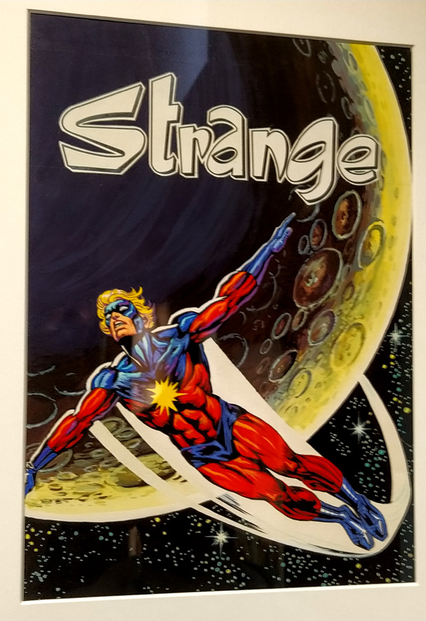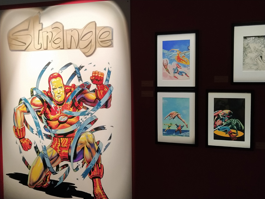 Il y a des moments, comme ça, qui ne s’inventent pas : Au milieu de l’exposition, un couple s’arrête. L’homme porte un coup d’œil sévère aux crayonnés de l’artiste, puis à certaines de ses couvertures anciennes, quand il se cherchait encore. Plus loin il regarde une des affiches peintes par Frisano. Pour lui, c’est sûr, les styles n’ont rien à voir. Il s’agit forcément de plusieurs artistes !!! Et sa compagne, lui faisant une confiance aveugle, fulmine « Il n’y a pas les signatures dessus ! Pourquoi ils n’ont mis que le seul nom de ce Frisano ? ». La scène est une vraie « volupté de fin gourmet » chère à Courteline. Mais ces deux visiteurs, comiques sans le savoir et se méprenant sur la nature des dessins, ont l’avantage de prouver qu’à l’occasion de l’hommage rendu à Frisano a attiré bien plus que les seuls nostalgiques de Strange et autres revues associées. A côté des collectionneurs endurcis de comics, reconnaissant l’original de la couverture de Nova ou de Titans avec laquelle ils ont basculé dans ces lectures, on croisait aussi un grand nombre de curieux, médusés de constater le talent qu’un peintre pouvait mettre au service d’illustrés souvent sous-estimés.