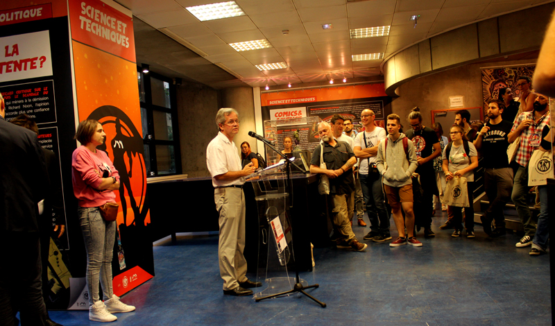 21 septembre 2018La Bibliothèque de l’Université Lyon III (Jean Moulin) accueille jusqu’au 29 novembre une exposition consacrée à la « Société des Comics ». C’est à dire l’univers des comic-books comme témoin de son époque, qu’il s’agisse de mœurs, de valeurs morales, de technologies, ou de politique. L’inauguration se déroulait ce vendredi soir…