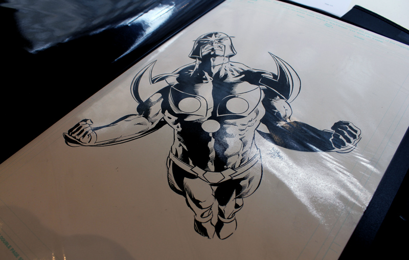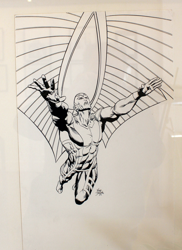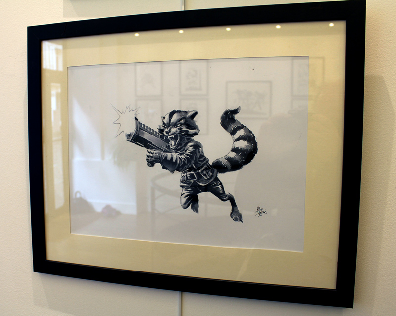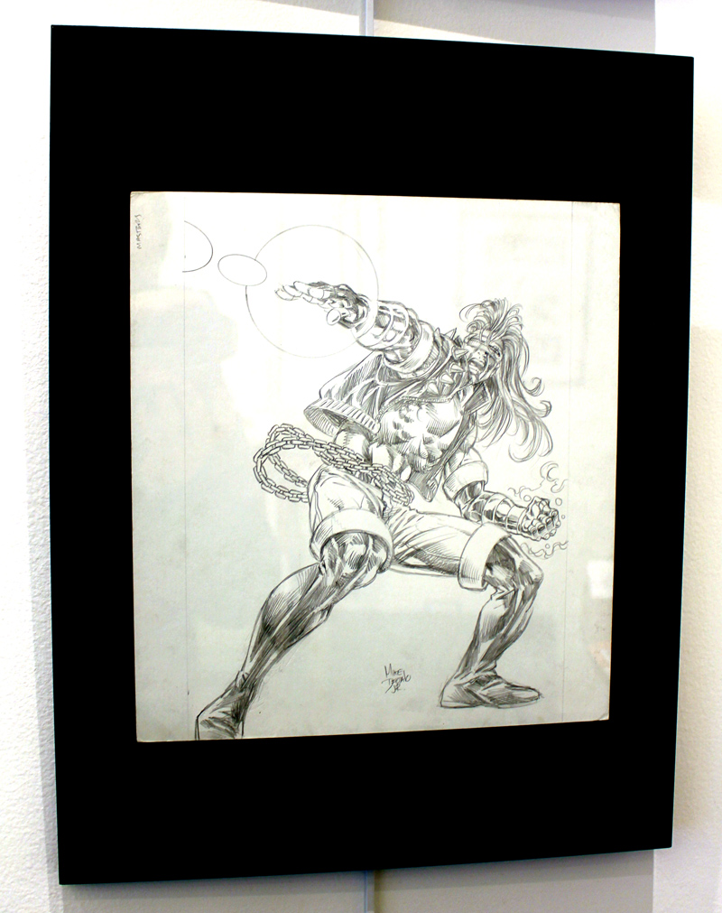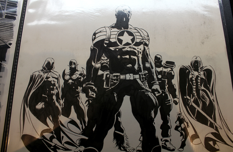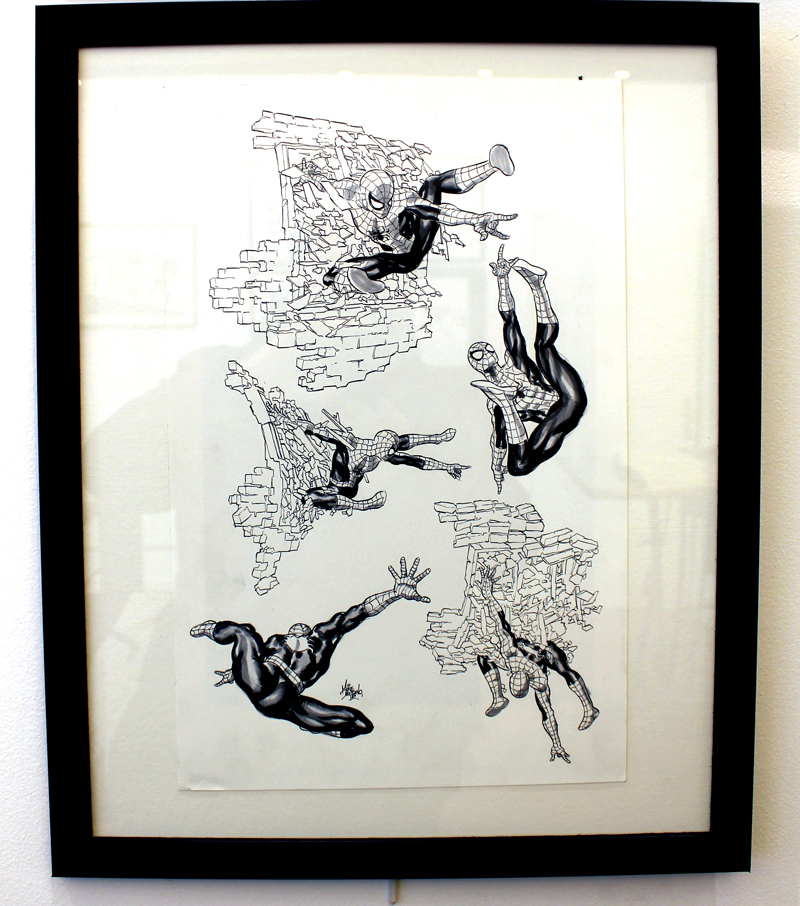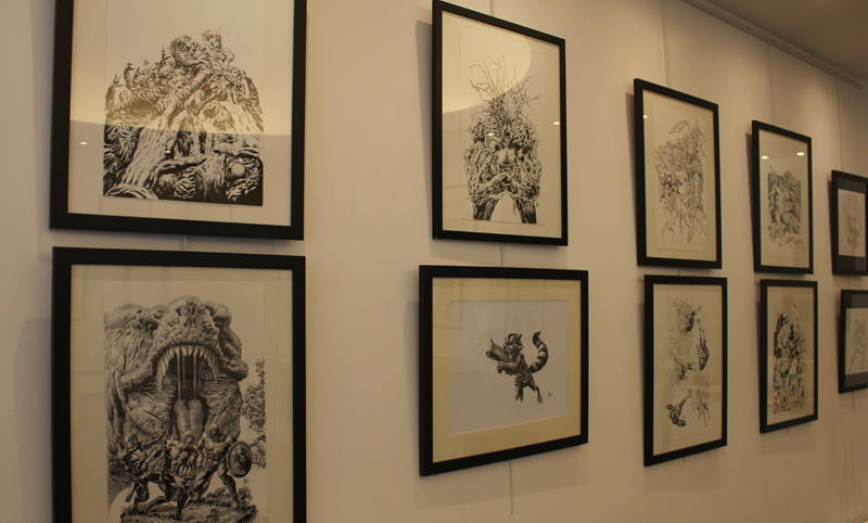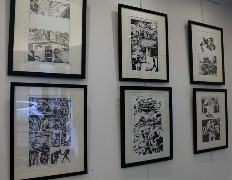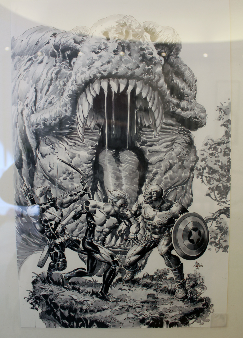 Le dessinateur brésilien Mike Deodato a percé sur la scène des comics américains dans les années 90, avec des séries comme Wonder Woman, Thor ou Incredible Hulk. Mais depuis le début du XXI° siècle l’artiste est devenu plus particulièrement un pilier de Marvel en se voyant proposer de nombreuses séries en vue ou même certains crossovers. L’exposition-rétrospective accueillie par la Galerie 9e Art (4 rue Crétet, 75009 Paris) fait le tour de ces nombreuses activités. Si des projets récents comme Thanos sont absents à l’appel, on croise aussi bien des pages et des couvertures de Punisher War Journal ou des X-Men que des Guardians of the Galaxy. Il y a des choses impressionnantes, comme une couverture en tons grisés d’Avengers Millenium, où Captain America, Quicksilver et Hawkeye font face à un dinosaure, certaines pages devenues classiques des New Avengers, Secret Avengers, Spider-Man Breakdown ou des Thunderbolts ou des choses plus rares, comme des crayonnés préparatoires et des études de personnages (Rocket Raccoon, Groot, Mystique, Spider-Man…). Outre les planches exposées, quelques curiosités sont aussi visibles dans des books. On y croise aussi bien Batman que Conan.