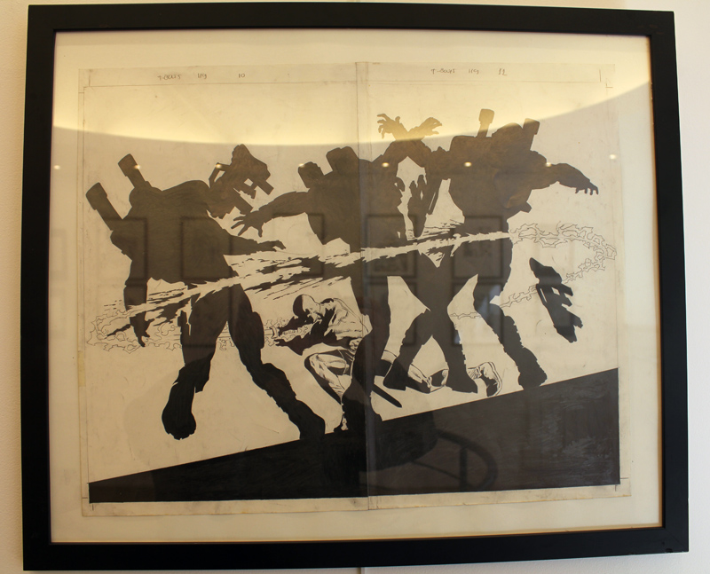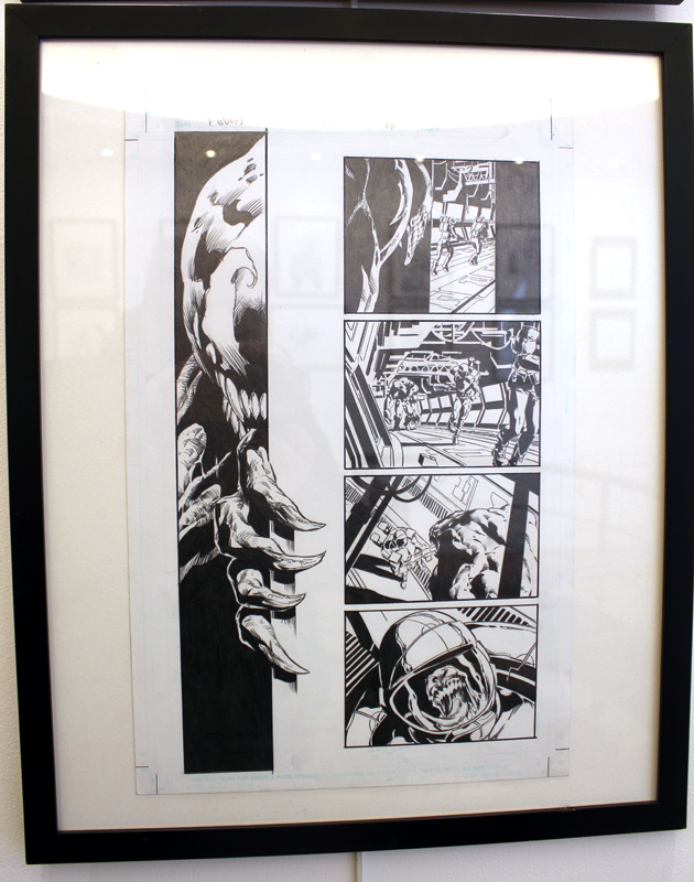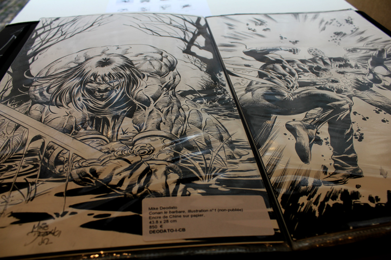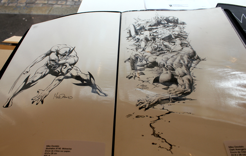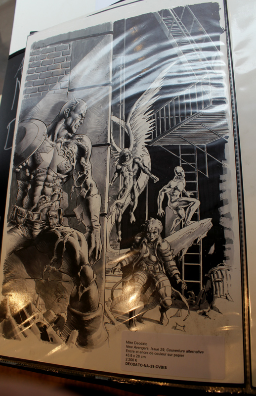 S’il s’agit d’une expo-vente et que, par la force des choses, l’exercice n’est pas à la portée de toutes les bourses, les prix sont cohérents avec ceux du marché (comptez 1500 euros pour un original de couverture) mais cachent aussi des montants carrément plus abordables (350 euros pour une page intérieure des Dark Avengers, 180 euros pour une autre de Punisher War Journal). Il n’en reste pas moins que l’expo (ouverte seulement cette semaine) est visible gratuitement jusqu’à samedi soir et que même pour ceux qui n’entendent pas investir dans un original, on ne voit pas tous les jours tant d’originaux de Deodato réunis à Paris.