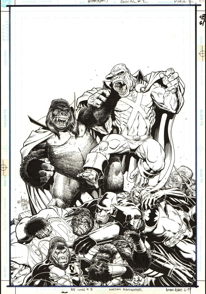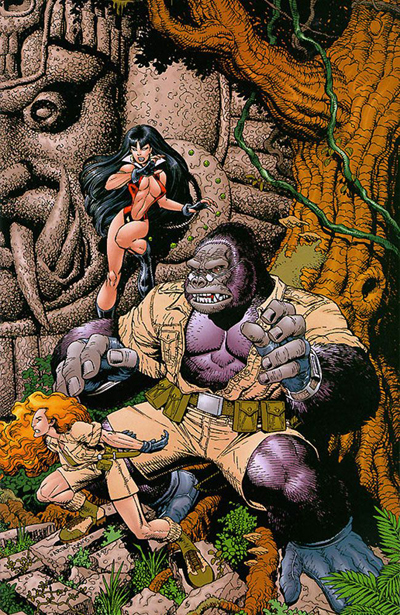 Singes géants, lourds et puissants, accompagnés de jeunes femmes aux formes pulpeuses et aux postures sexy… voilà ce qu’on trouve le plus souvent sous la plume d’Art Adams. Et cet attrait est connu de tous : DC comics lui confiera des couvertures du crossover annuel JLApe, et Marvel fera de même pour sa mini-série Marvel Apes (intrigues où les super-héros sont des singes). Quand à Monkeyman and O’brien, création d’Art Adams, elle propose le même schéma. Un schéma qui évoque, on n’y échappe pas, l’un des grands mythes de la culture populaire : King Kong, 1933.