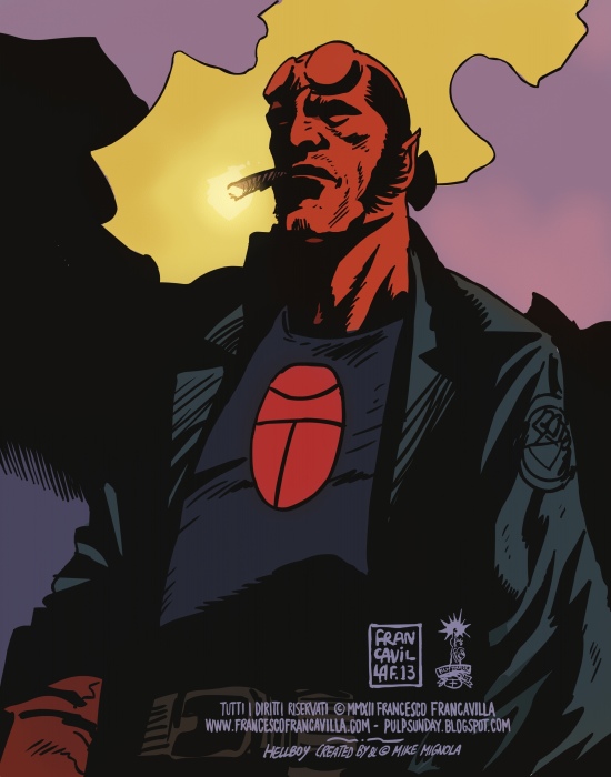 Les mêmes déclinaisons de rouges et d’oranges de l’astre qui disparaît, les mêmes nuances de bleus, de violets, de gris chauds et insaturés du ciel qui s’assombrit. Tout chez Francavilla procède de ce soleil qui, déclinant, a toujours fasciné l’humanité par sa palette.