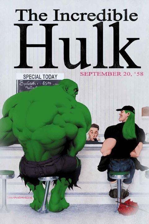 Et c’est là que, d’un (puissant) bond d’un seul, nous revient le géant vert hypertrophié. Comme pour le jour et la nuit d’Héraclite, HULK ne succède pas purement et simplement à Banner, et inversement. Dans l’apaisement de Bruce il y a déjà, tapie dans un coin de son esprit, la colère qui, en prenant de l’ampleur, le changera en HULK ; et il y a en HULK, jamais éradiqué, le calme qui, en infusant, le changera en Bruce à nouveau. « L’union des contraires par le devenir ». Le couple Banner/HULK peut clairement se lire, à présent, comme l’incarnation symbolique moderne de ce que la pensée héraclitéenne, il y a plus de deux mille cinq-cents ans, avait de plus atypique. Si Héraclite revenait aujourd’hui, sa lecture favorite pourrait bien être, après tout, le récit des aventures du Dr Bruce Banner et de son inséparable compagnon furieusement vert.