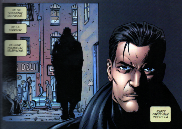 Le choix persistant du Punisher est bien entendu discutable sinon contestable, et pas plus Becky Cloonan que Garth Ennis, avec Steve Dillon, ne feront du reste l’économie de ce débat moral au travers des intrigues. Mais là n’est pas la question dans cette étude. Nous retiendrons seulement que choix il y a, justement, c’est-à-dire que l’expression monolithique du personnage procède d’une « décision ». La tristesse, puis la colère, chez Frank Castle, vont provoquer la résolution du Punisher, là où tous les autres personnages, malfrats, détraqués ou victimes, affichent au contraire des réactions incontrôlées, dictées par des événements qu’ils endurent sans jamais pouvoir reprendre les rennes de leur destin. Les émotions de Frank accouchent non pas d’un sentiment subi mais bien d’un sentiment choisi. On pourrait nous répondre que c’est le traumatisme qui détermine le Punisher. Mais voici ce que dit Henri Bergson dans « Essais sur les données immédiates de la conscience » : « Nous sommes libres quand nos actes émanent de notre personnalité entière, quand ils l’expriment, quand ils ont avec elle cette indéfinissable ressemblance qu’on trouve parfois entre l’œuvre et l’artiste. » De toute évidence, sous les traits que lui prête Dillon, c’est la personnalité intégrale et achevée du personnage qui décide. On y voit très clairement que le trauma a fusionné avec tout son être ; que le trauma EST le Punisher. L’art de Steve Dillon penserait alors ce précieux (parce que rare) libre-arbitre émergeant au sein de tous les déterminismes que nous subissons. Il peindrait même la victoire de ce libre-arbitre acharné qui, sur le visage du héros, perdurera tout au long des divers récits, allant jusqu’à transcender les scénaristes – de Ennis à Cloonan en passant par Dillon lui-même -, une résolution qu’il affichera continûment face à ses adversaires ou alliés. Bien sûr, le pinceau de Steve nous montre un Punisher résolu et imperturbable qui flingue tous les mafieux qui croisent sa route ; mais ne montrerait-il pas en même temps, d’une encre plus philosophique (et plus sympathique !), le libre-arbitre qui dézingue tous les déterminismes sur son chemin ?
