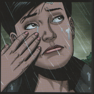 Car c’est une huitième expression que le Punisher va véhiculer sous le trait de Steve Dillon. Les sept autres ont en commun de dominer celui ou celle qui les exprime. On ne décide pas d’être joyeux, triste, en colère, dégouté, apeuré, surpris ou méprisant. Ce sont les événements qui commandent et qui imposent. Or, le Punisher, dans un regard unique et prégnant auquel participent tous les muscles faciaux, affiche tout autre chose : la résolution. Et la résolution est volontaire. On se retourne vers les événements et on tente de les faire plier. La résolution c’est le refus d’endurer et c’est la prise d’initiative. Bien sûr, le personnage, quel que soit le dessinateur, a toujours eu un côté résolu. Mais il est parfois lui aussi surpris, attristé, déprimé, autrement dit il est une proie possible de l’émotion qui le prend, du sentiment qui le domine. Chez Dillon rien de tout cela. A de très (très !) rares exceptions près, le héros à la tête de mort est constamment et délibérément volontaire, il est continûment dans le choix de ce qu’il fait et de ce qu’il a à faire. On peut lire parfois, dans sa résolution ultime, des bribes d’étonnement, des soupçons de colère ou des pincées de mépris, mais c’est bien la résolution qui domine toujours. Notons que Becky Cloonan fera dire à l’un des protagonistes de sa minisérie : « On peut pas tuer Castle… Il est déjà mort ». Entendez celui qui subit (Frank Castle) est mort, seul celui qui est dans le choix (The Punisher) est vivant. Ajoutons que le méchant de l’histoire de Becky – l’adversaire principal du Punisher dans « Opération Condor » -, est nommé « Face », et que celui-ci arrache la peau du visage de ses ennemis vaincus pour les clouer sur des trophées de bois accrochés à son mur. Clin d’œil appuyé à la quintessence de l’art de Dillon ? Rencontre inconsciente du visuel et du scénario ? Simple coïncidence ? Quoi qu’il en soit cette huitième expression est bien celle du choix, de la volonté, de la résolution, là où l’ensemble des autres personnages sont possédés, eux, par tout un panel d’émotions qui les saisit.