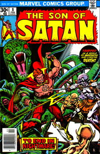 Je ne comprendrais sans doute jamais comment dans les années 70 Marvel a osé sortir un comic-book sur le Fils de Satan et comment le Comics Code Authority a pu approuver la chose. Non pas que ca me dérange (j’aime même plutôt le personnage) mais enfin à l’époque j’imagine bien quelques conservateurs/intégristes montant sur leurs grands chevaux puisqu’en définitive la série racontait les aventures de l’Antéchrist. Dans certains cercles, on devait « pester grâve » et il y a tout lieu de penser que certains distributeurs refusaient de prendre la série en stock. Bref, Marvel avait annoncé la fin de la série dès le #7, promettant tout juste qu’un ultime épisode restait à paraître.