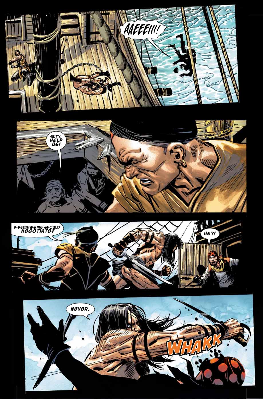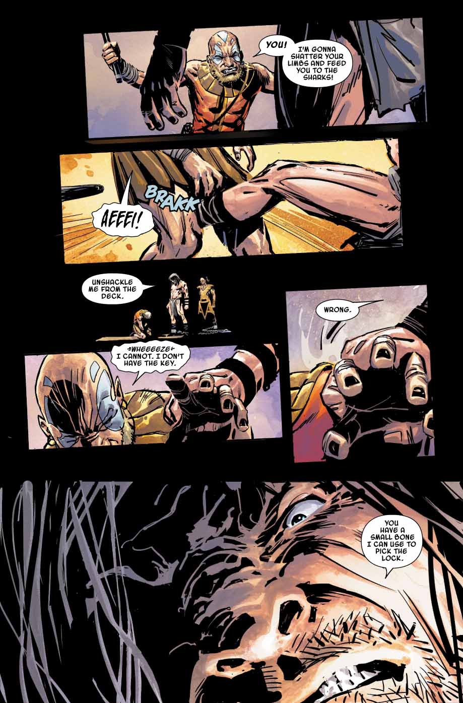 10 février 2019The ancient cult of Koga Thun. A mystical treasure. And the only man who can save the Hyborian Age! Adrift at sea. No food. No weapons. Death surely awaits him. But the lionhearted Conan is not so easily subdued, by Crom! When Conan finds himself captured, he unleashes his might on an unsuspecting pirate crew…one whose dark secrets will plunge Conan on the trail of an ancient treasure that may prove to be his undoing!