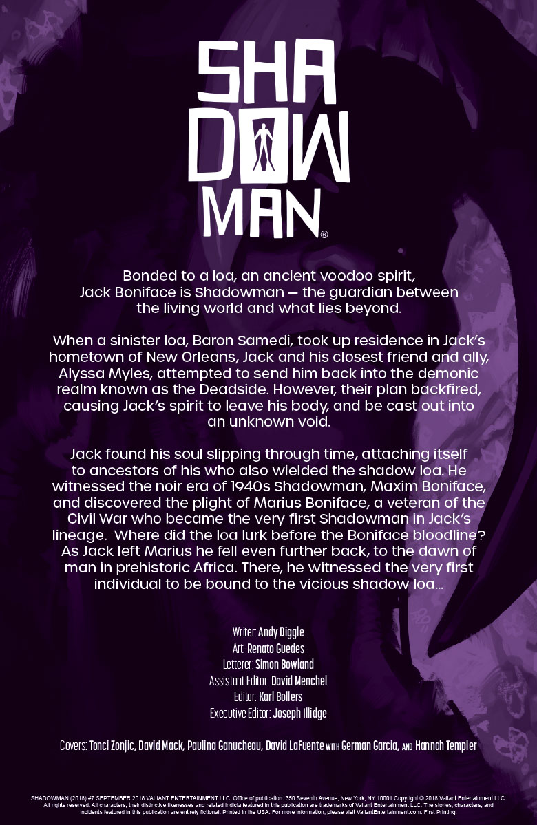 15 septembre 2018Who is Shadowman? It’s a question Jack Boniface has asked himself ever since he was called to protect our world from the demonic forces that lie beyond… Now, as he rides backseat in the body of a Paleolithic hunter, eons before his own birth, he will finally learn the shocking true identity of the loa spirit bound to his soul! And, as a shadow begins to spread across West Africa, Jack must defend his fellow tribesmen or else be trapped in 40,000 B.C. forever! « Dead and Gone » reaches a monumental climax.
