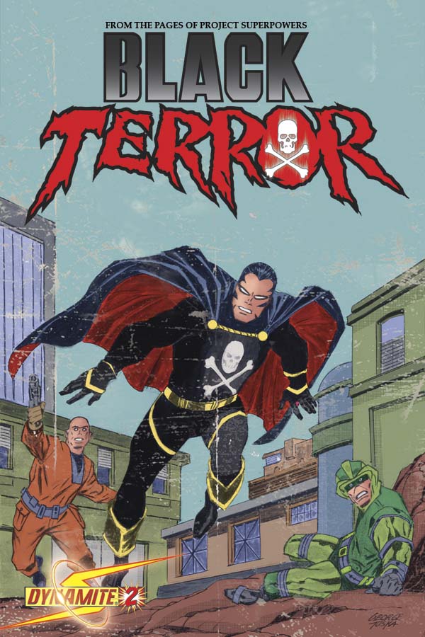 « Alex, Jim and Mike are both firing on all cylinders with this series, » explained Dynamite President and Publisher Nick Barrucci. « Mike’s pencils are the finest of his career and Jim and Alex have crafted a story that ties in with the events of our main Project Superpowers series, as well as working independently of those events for new fans. This opening storyline takes us right to the door of Superpowers Chapter Two featuring the Inheritors, and then beyond that, The Terror will continue to kick ass on the racks in his own ongoing series! Having Jazzy John Romita, the man who in my opinion was the « definitive » Spider-Man artist grace a rare chase cover to issue #1, and George Tuska start his relationship with Dynamite by providing a chase cover to issue #2 is a rare treat, and one that we are ecstatic to present to our fans and retailers! Both are classic artists in their own right and have helped to create the characters we’ve grown to love! The wonderful part of having Mr. Tuska involved, is that he brings a true taste of the Golden Age with his classic approach. We’ve also been able to have the colorist and our art guys « play » with the cover, to have it look as if it’s just been « found » in a collection or your favorite retailers back issue bin. This has been a lot of fun.