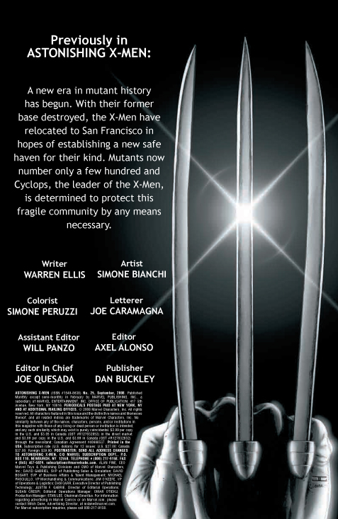 [ENGLISH] Marvel tells us: Astonishing X-Men #25 !!! THE STORY: It’s the book you’ve been waiting for. The superstar team of Warren Ellis and Simone Bianchi are ready to take the X-Men to the “Second Stage”! “Messiah CompleX” pulled the X-Men team together, “Divided We Stand” tore them apart. Now the X-Men are back to business — with a new look, a new base of operations, and a mystery to solve that will take them into previously uncharted territory and test them to their core! SFX TIE-IN