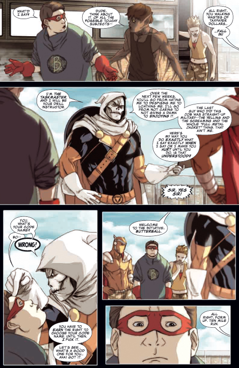 [ENGLISH] Marvel tells us: Avengers The Initiative #13 – The story: There’s a contract out on The Taskmaster, and no shortage of villains willing to fulfill it. But what’ll kill him first — the bad guys, or his latest class of recruits? Welcome Annex, Prodigy, Gorilla Girl, Sunstreak and Batwing to the Initiative. But are they — is anyone — ready for the coming of…Butterball??