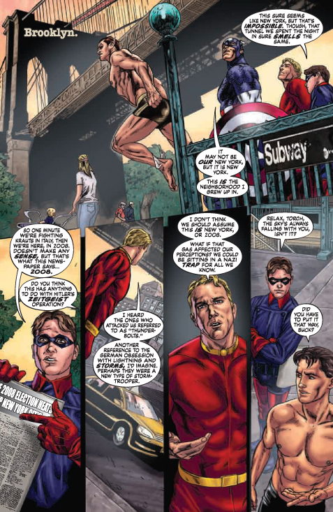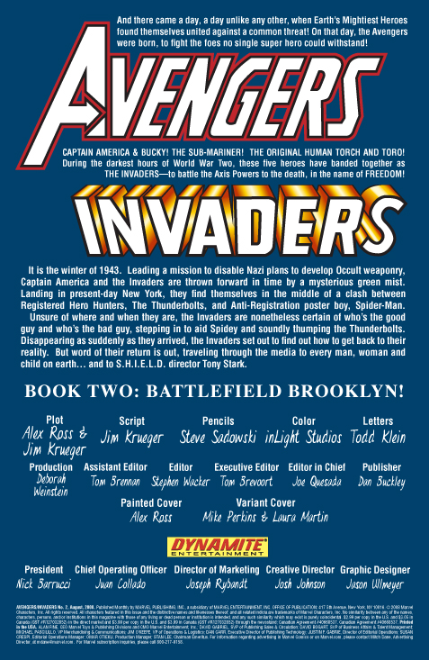 [ENGLISH] Marvel tells us: The Story: The cross-time team-up of the year continues with the award winning team behind EARTH X, Justice and Project: Superpowers! With World War II’s greatest heroes mysteriously transported to 2008, it takes the Mighty Avengers to bring them in before the world realizes that the Invaders are back…including the original Captain America. But will Iron Man and S.H.I.E.L.D. have enough firepower to hold them…or do the Invaders have everyone just where they want them?