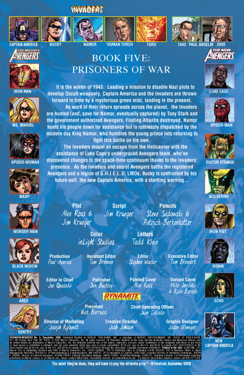 Written by Alex Ross and Jim Krueger, penciled by Steve Sadowski, cover by Alex Ross, variant cover by Mike Deodato, sketch variant by Ross.