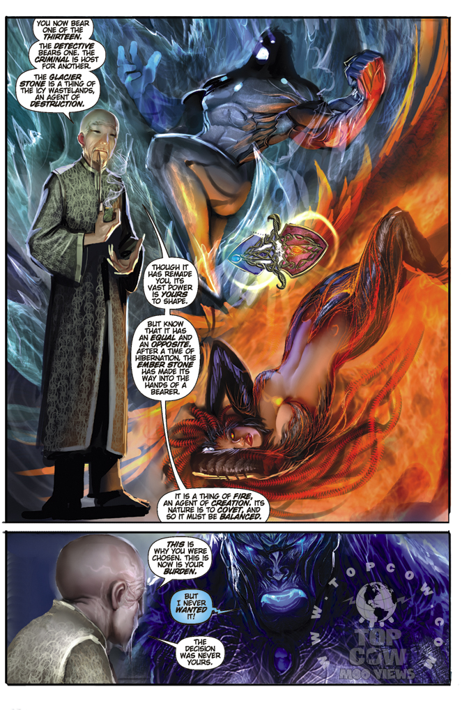 [ENGLISH] Top Cow tells us: The earth-shattering saga revolving around the three main players of the Top Cow Universe continues! The paths of the Witchblade, The Darkness and The Angelus converge on New York City once more. By the end of Broken Trinity, a new balance of power will be forged as new players are introduced and at least one established character will be gone forever. The team of Marz and Sejic that dazzled you with First Born and their ongoing adventures on Witchblade is back to change the face of the Top Cow Universe one more time in spectacular fashion!