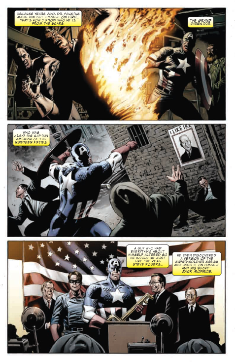 [ENGLISH] Marvel tells us: Captain America #38 – The story: The new Captain America never wanted to be take that position, but he’s doing his best to carry on the legacy of Steve Rogers, in his own way, while trying to save Sharon Carter from the Red Skull and his minions. But maybe he’s not the only one running around in a Captain America outfit! Part Two of « The Man Who Bought America » by the acclaimed team of Ed Brubaker and Steve Epting.
