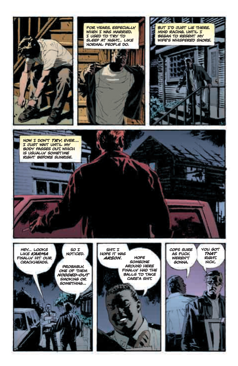 [ENGLISH] Marvel tells us: THE STORY: A woman in trouble, friends on the run from cops and mobsters, and a secret no one is prepared to face! All this and more await readers in the beginning of a hard-hitting new noir tale “Bad Night” Part 1 of 4, as CRIMINAL’s new expanded format keeps the hits coming! Five years ago, Jake was a happy family man, long-retired from the life of crime he grew up in, and then the police made him the prime suspect in a horrible crime and ripped his life apart. Now, years later, Jake is less than a shadow of his former self, a hopeless insomniac who walks the city streets at night. But one night, he walks into the wrong place at the right time, and his whole life changes again… For the better or the worse, is the question.