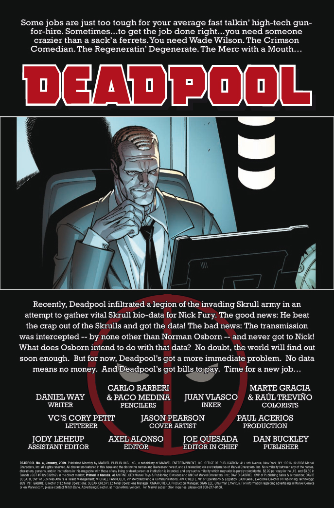 His mission in “Secret Invasion” completed, Deadpool goes back to business as usual, completely unaware that he’s been sold up the river by a villain of incalculable guile — a villain who won’t soon forget — or forgive — Wade’s sins.