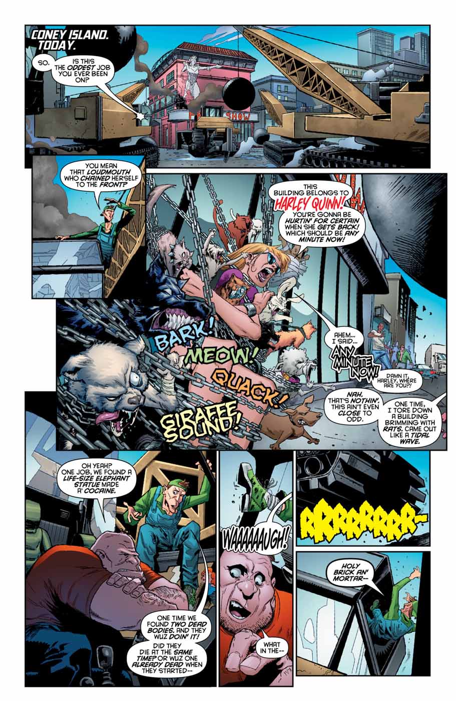 15 août 2018Being stuck on an alien planet for months has really messed with Harley’s finances-she’s gotta become a working stiff again just to pay off all the bills she racked up while on Apokolips! And not only is the city threatening to demolish her Coney Island apartment building if she doesn’t pay up, she’s helping failed Fury Petite Tina to adjust to life on Earth, which ain’t cheap. Sounds like it’s time for the ramen diet!