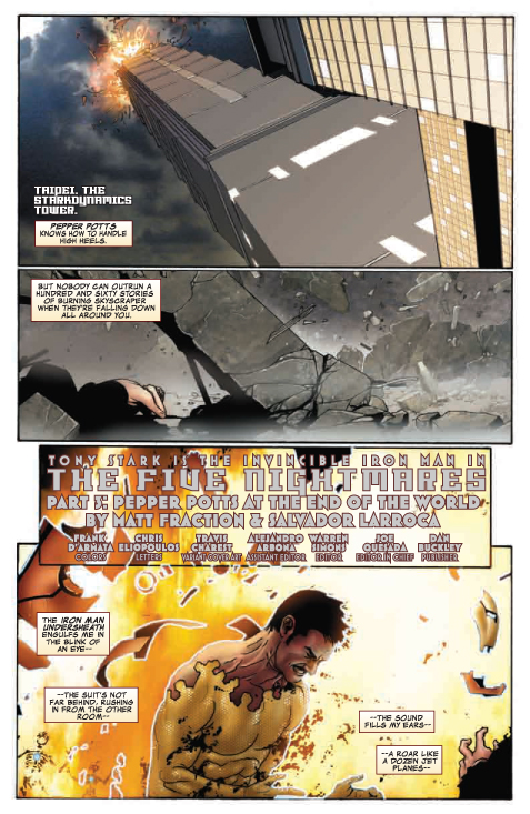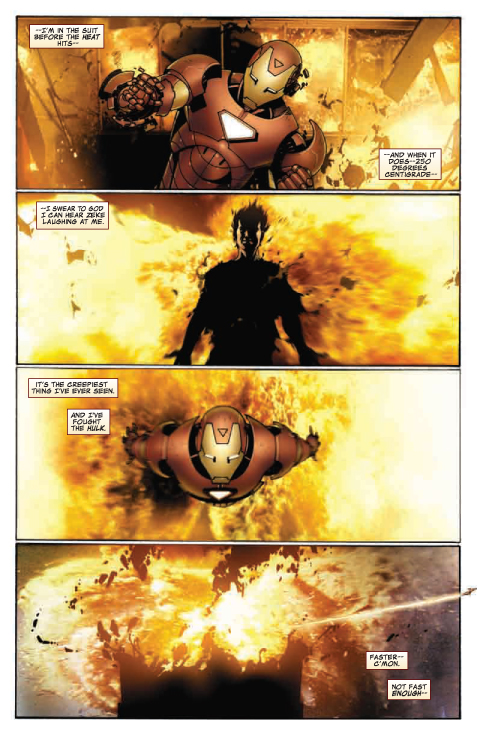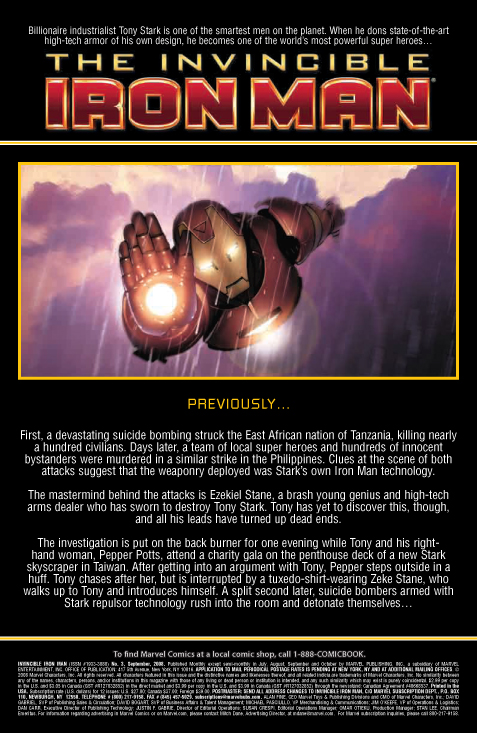 [ENGLISH] Marvel tells us: Iron Man’s new ongoing series soars to armor-melting speeds! New fans, get in on this one now, ‘cause the getting is good! Longtime Iron Man readers, strap in, because Tony Stark’s about to face a shocking new menace…one that’s oddly familiar! Is this all part of Ezekiel Stane’s unstoppable plan to destroy his sworn enemy, Iron Man?! Has Tony’s incomparable intellect, genius technical acuity and vast business acumen finally met their match in the brilliant young Zeke? How’s ol’ Tony gonna get out of this one? Written by Matt Fraction (IMMORTAL IRON FIST) with mind-blowing art by Salvador Larroca (UNCANNY X-MEN)!