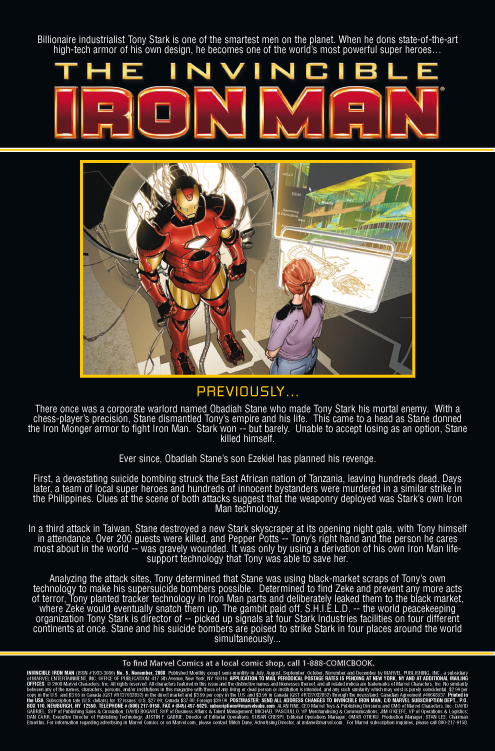 [ENGLISH] Marvel tell us: THE STORY: THE FIVE NIGHTMARES builds to its penultimate chapter. Stane and his army make their assault against Stark — the man AND the conglomerate — and Tony Stark shows even an old dog can pick up a trick or two when his back’s against the wall.