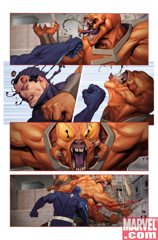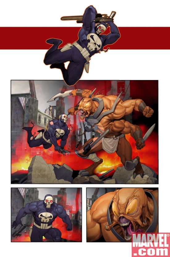 …and this is no ordinary battle, so Frank will don something we can only call « the Venom Suit! » Armed with his new costume, two chainsaws and a gun that shoots swords, it’s time for the action story you demanded!
