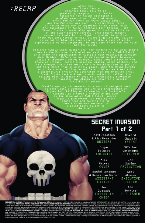 [ENGLISH] Marvel tells us: THE STORY: A SECRET INVASION TIE-IN! With an alien armada laying the world to waste, Stuart RAMPAGE Clarke decides to make his move. Skrull Armageddon is just a backdrop for his ultimate revenge- against Tony Stark, against S.H.I.E.L.D., and against anyone that ever stood in his way. And what about Frank Castle? Where does THE PUNISHER fit into Clarke’s plans? It’s the end of the world as we know it — time to cross some names off the old enemies list.
