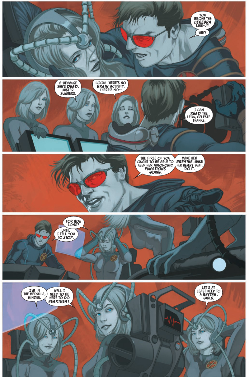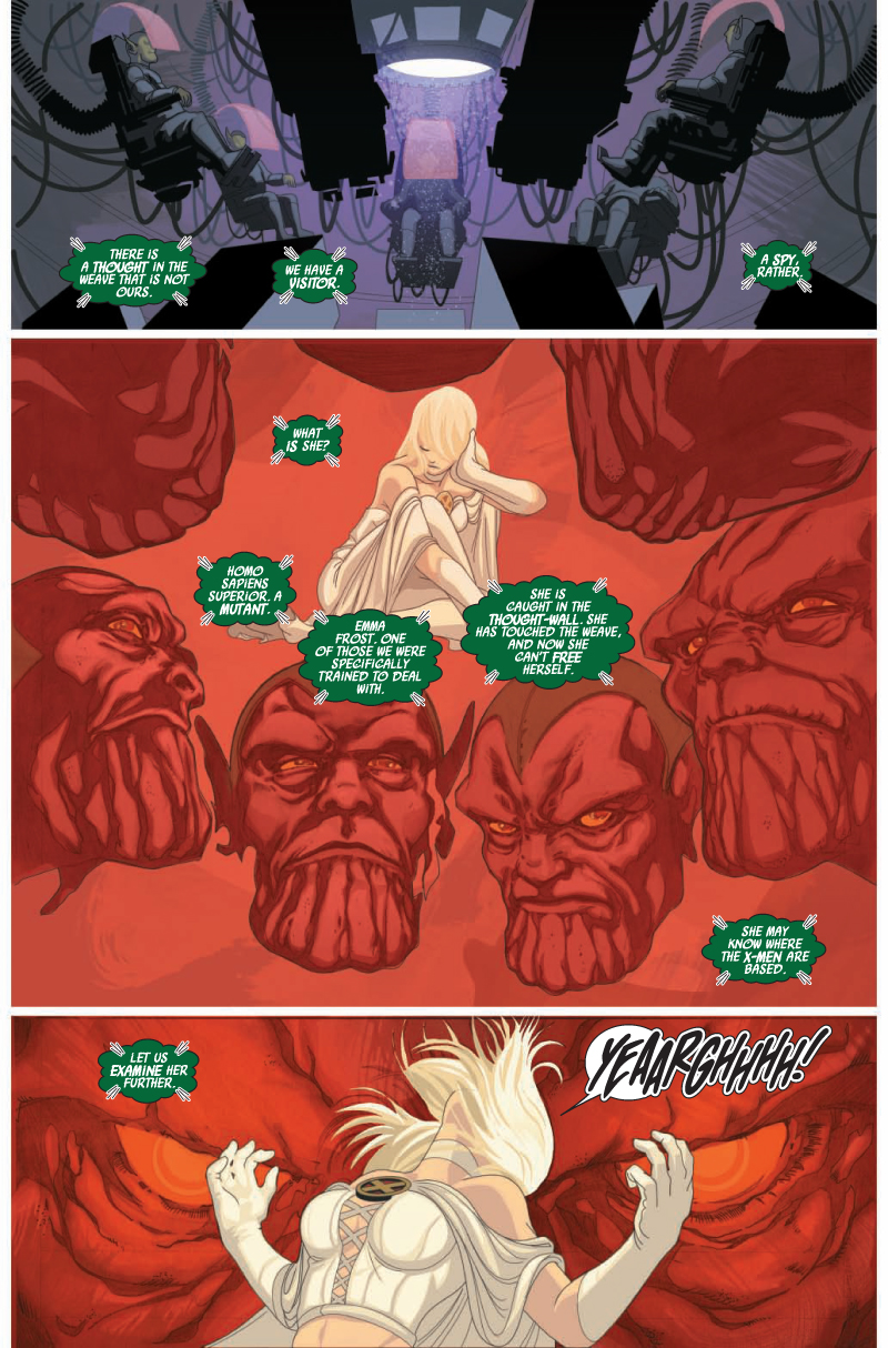 [ENGLISH] Marvel tells us: THE STORY: Emma Frost fights alone against the Skrull thought-wall…