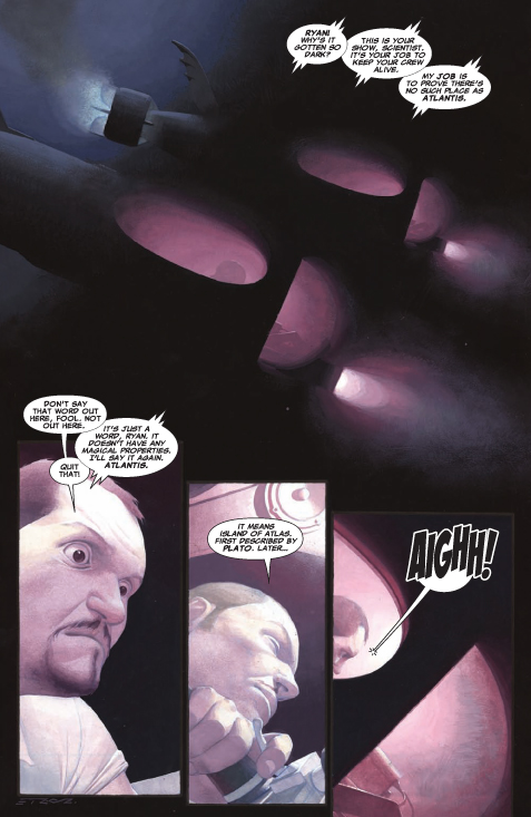 [ENGLISH] Marvel tells us: THE STORY: The latest offering from the red-hot Marvel Knights line offers a searing vision of Namor, the Sub-Mariner as you’ve never seen, brought to you by Peter Milligan (X-Force) and Esad Ribic (Silver Surfer: Requiem)! Atlantis. Throughout the ages, a few men have wondered if this fabulous place actually exists. Fewer have imagined that the city is protected by a wild and vengeful being, the very embodiment of the untameable depths themselves — the Sub-Mariner. When a legendary adventurer named Randolph Stein travel deep into the dark belly of the Marianes trench in search of a missing deep sea expedition, he is about to encounter things that supersede his wildest imagination. There is something down there in the murky depths — something far closer to God than man — and it has been waiting for Stein for a long, long time.