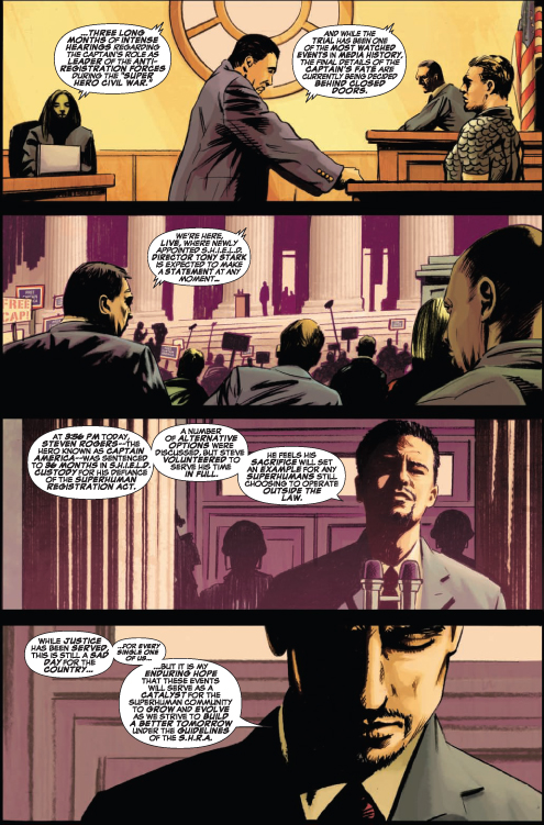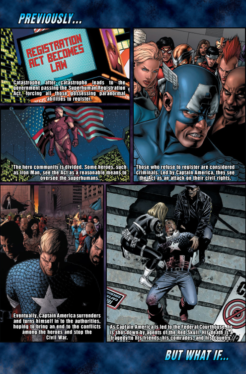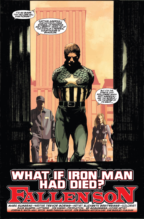[ENGLISH] Marvel tells us: THE STORY: Every man, woman and child in the Marvel Universe remembers where they were the day that Captain America died. But what if the event that forever changed the heart of heroics had never actually happened? And what if the hero that helped define the post-Civil War era had fallen in Cap’s place? Join us for a tale of death, mourning and rebirth as we ask the question on everyone’s mind: « What if Iron Man had died instead of Captain America? » Featuring Part 2 of a special five part back-up story, ‘What if the Runaways Became the Young Avengers?’ In this issue… Iron Lad stands revealed!