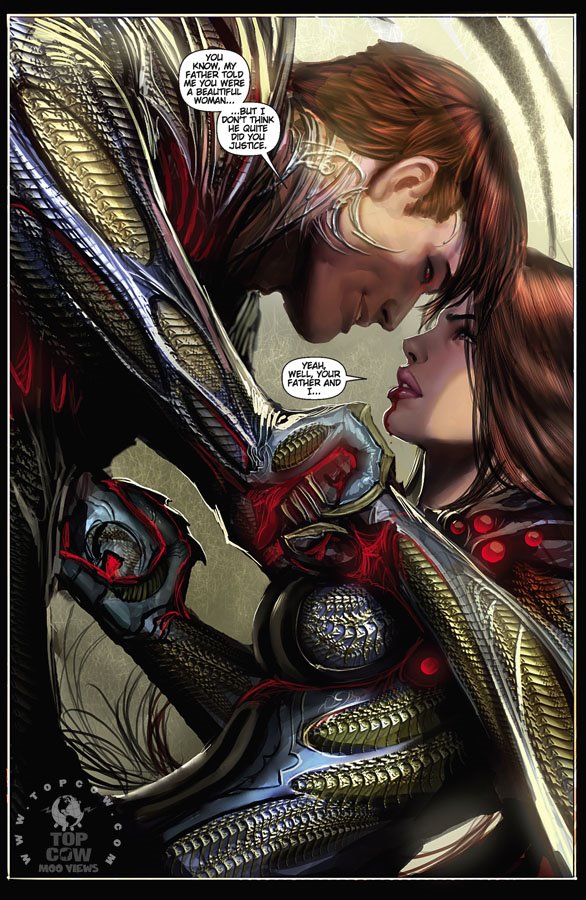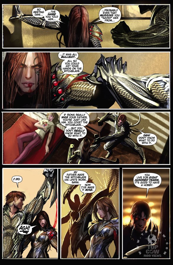 [ENGLISH] Top Cow says: More than any other man, Kenneth Irons was the ultimate adversary for Witchblade wielder Sara Pezzini. But even though Irons is dead and buried, his reach may stretch beyond the grave. Sara’s past comes back to haunt both her and Dani, as the creative team of Ron Marz (GREEN LANTERN, SAMURAI: HEAVEN AND EARTH) and Stjepan Sejic (FIRST BORN) race toward the climax of their first storyline.