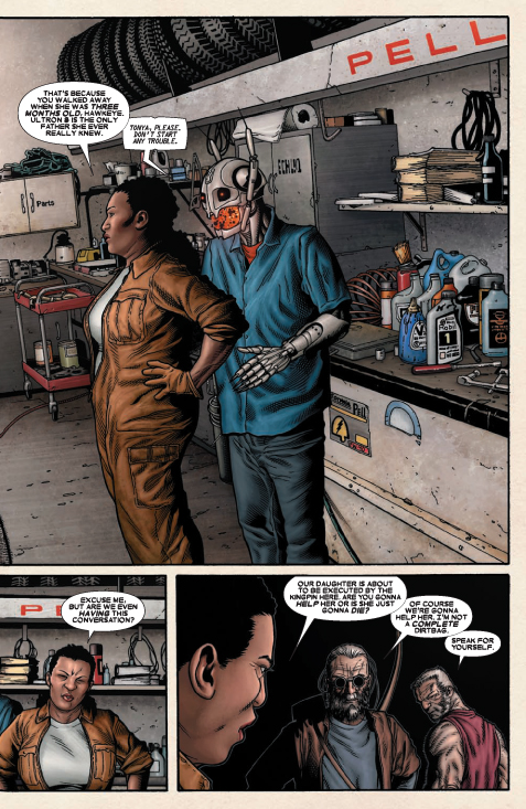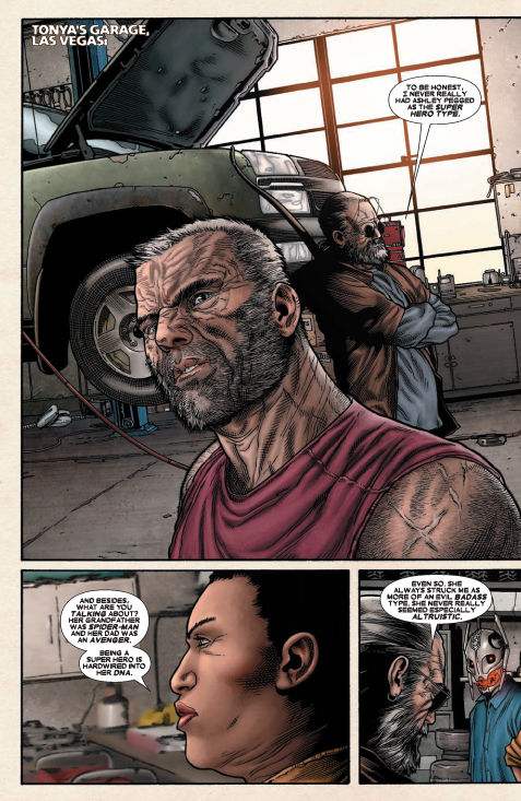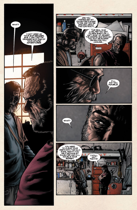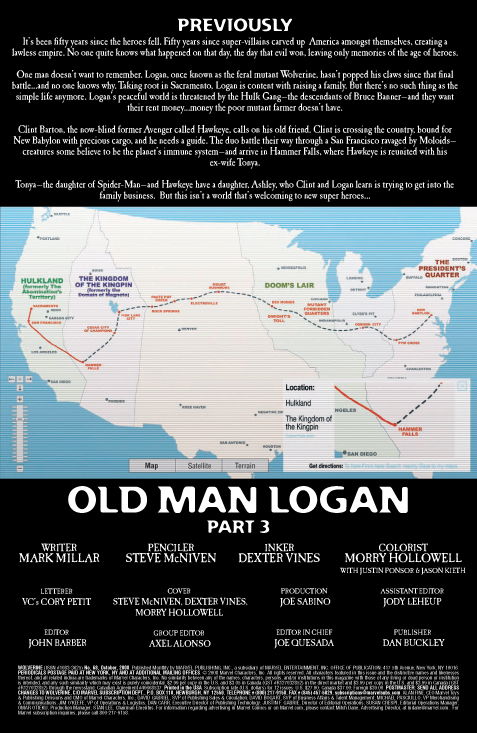 [ENGLISH] Marvel tells us: THE STORY: “OLD MAN LOGAN” – 50 years after the super heroes died, WOLVERINE and the blind archer, HAWKEYE, continue their journey across a ruined America. Next stop: Cedar City, Utah—home of the man who killed Magneto: the all-new, all-different KINGPIN! And he isn’t about to let Logan and Hawkeye pass without paying the toll… Plus: the secret of Hawkeye’s daughter is revealed! The biggest WOLVERINE story of the century by the best-selling creative team of the millennium continues! PART 3 (of 8).
