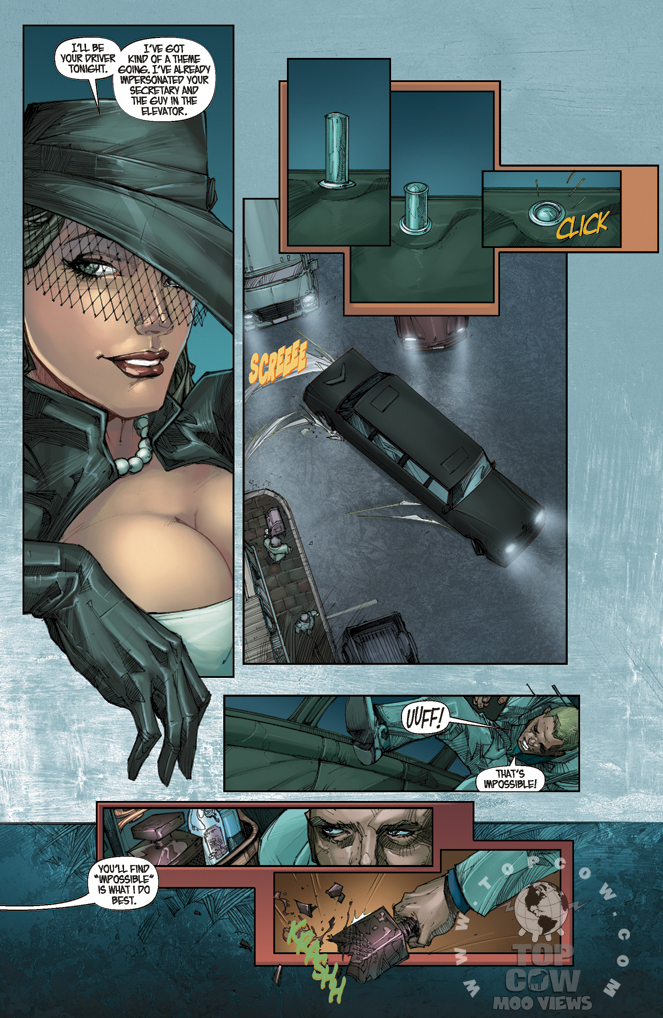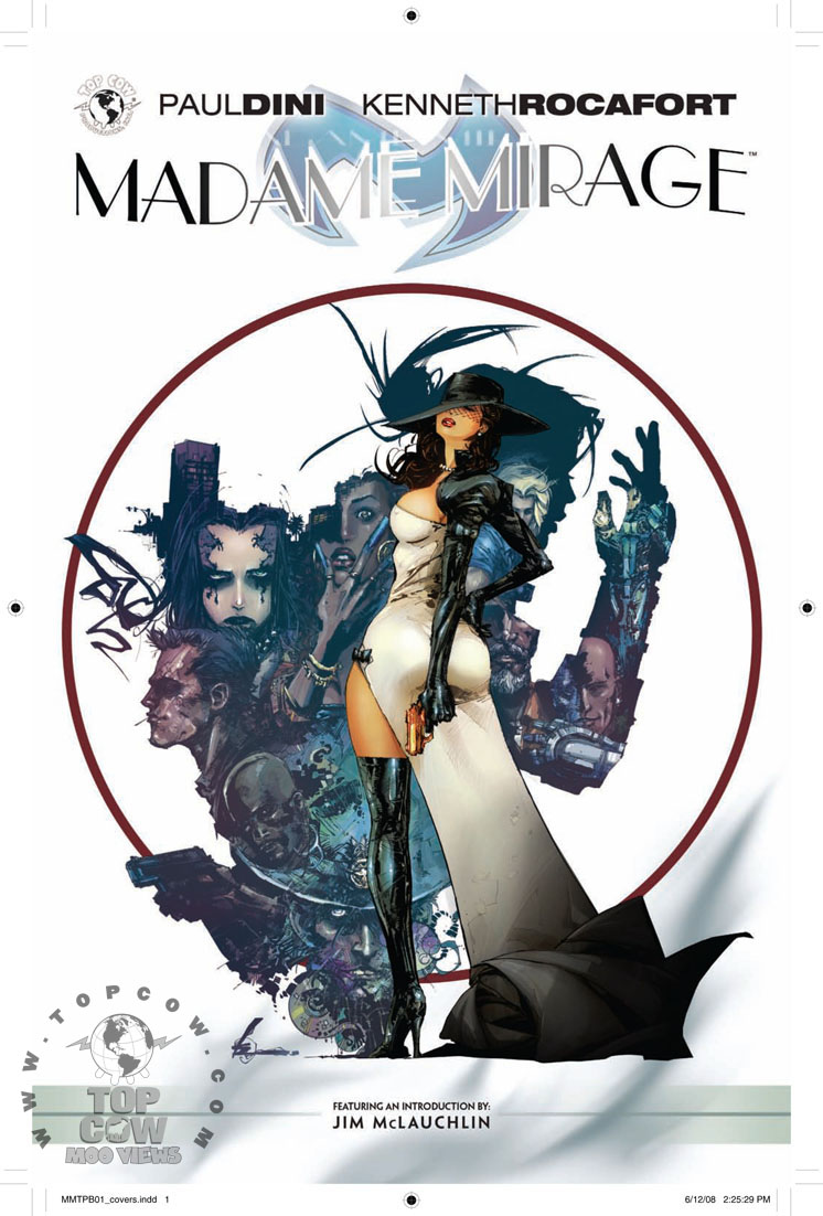 [ENGLISH] From the magical mind of Paul Dini (Countdown, Detective Comics) comes a new, original femme fatale story that combines elements of film noir, tech and superhero comics. Superbly drawn by rising star Kenneth Rocafort (Hunter-Killer), this volume collects “Season 1” of this amazing story, a cover gallery, and insightful behind-the-scenes material, plus an all-new cover by Rocafort! When they are wronged by a group of super-villains, a pair of sisters uses their technological know-how to wreak revenge, but are they overmatched, or is it all a part of the plan? With more twists than a Chubby Checker dance marathon, Madame Mirage will keep you guessing until the very end!