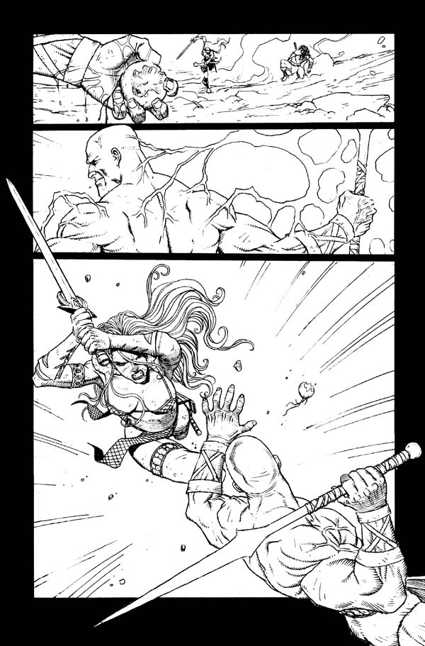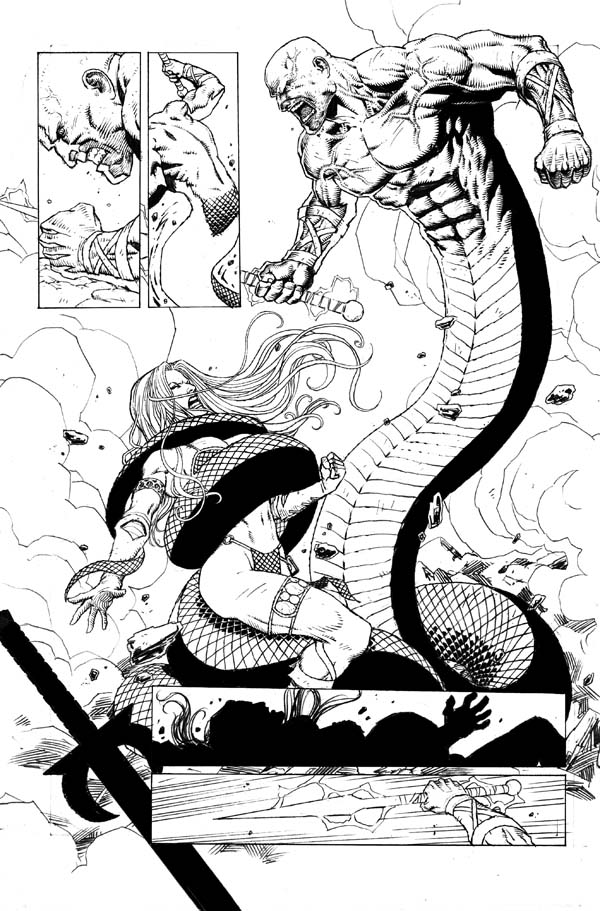 [ENGLISH] Dynamite tells us: October 29, 2007, Runnemede, NJ – DYNAMITE ENTERTAINMENT released images and information today concerning the next issue of the all-new Red Sonja mini-series event, The Sword of Red Sonja: Doom of the Gods. Featuring the return of writer Luke Lieberman, with co-writer Ethan Ryker and the debut of artist Lui Antonio with the stunning colors of