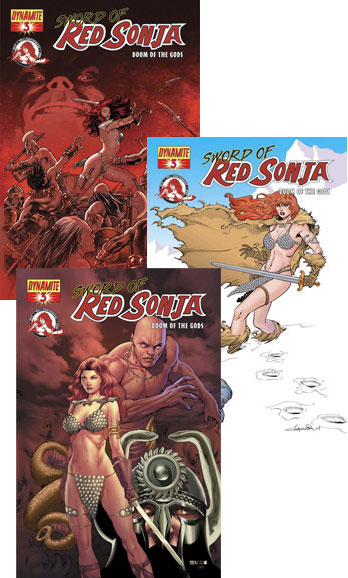 SWORD OF RED SONJA: DOOM OF THE GODS #3 (OCT073410) Writers: Luke Lieberman and Ethan Ryker; Penciller: Lui Antonio; Colorist: Will Murai; Covers: Paul Renaud (50%), Aaron Lopresti (25%), and Mel Rubi (25%)