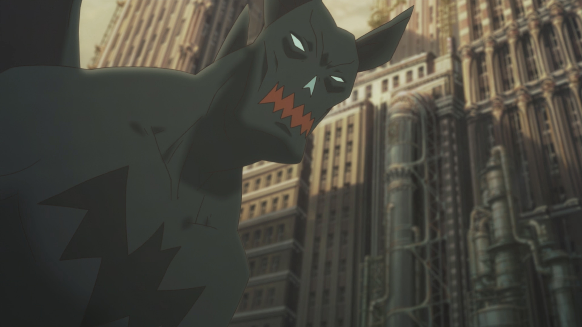My feeling was that I’d never worked in animation before, so if I was going to write a cartoon, I wanted it to BE a cartoon. I tried to come up with something that would be as visually entertaining as possible. Having worked on film crews in the art departments and around the digital effects guys, I know the best people for creating those visuals are the people that actually do it. So I was specific in relation to the story – I described a creature that grows out of shadows, a creature that is more bat than man, things like that. But I didn’t get into too much detail because I wanted the directors and designers to knock themselves out. The animators got the chance to go nuts – and with them, and for this, nothing is too wild.