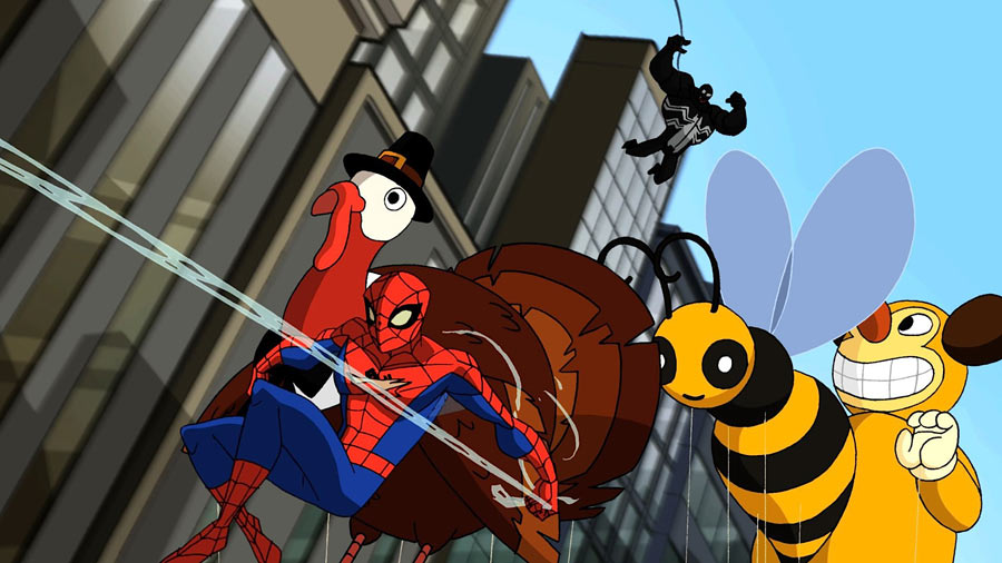 [ENGLISH] Spider-Man has shed his symbiote suit, but the alien has made Eddie Brock’s mind and body its new home – and that lethal combination is coming after Spidey and his friends and relatives in the action-packed season finale of « The Spectacular Spider-Man » this Saturday, June 14 at 10:00 a.m. ET/PT on CW4Kids. Entitled « Nature vs. Nurture, » the all-new episode opens on Thanksgiving as Aunt May Parker is released from the hospital – but Venom has no intention of letting May and Peter Parker enjoy a family celebration. Knowing all of Spider-Man’s secrets – even some Pete isn’t consciously aware of – Venom threatens to destroy Pete and everyone he loves most. Will Pete embrace his destiny in time to defeat this new arch-nemesis?