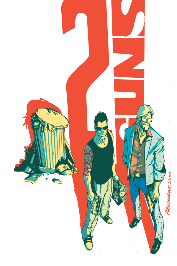 BOOM! Studios is currently serializing 2 GUNS at their website, updating a page a day online: http://webcomics.boom-studios.net/2008/07/13/2-guns-page-1/