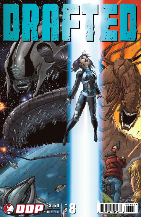 Je ne n’avais pas fait le rapprochement jusqu’ici mais il y a dans Drafted certains éléments que j’auraisn bien aimé voir dans Ultimate Nightmare. Si on compare la manière dont l’humanité est « concernée » dans ces deux séries, il n’y a pas photo, Drafted l’emporte haut la main. Bon, là dessus, c’est vrai, j’avoue, j’avais vu venir de loin la conclusion du numéro. Mais il y a un aspect certain aspect feuilletonesque qui fait qu’on s’attache assez à cette saga où beaucoup des protagonistes sont sacrifiables. Powers est étonnant là dedans et pourrait en apprendre à beaucoup de scénaristes de sagas spatiales récentes chez les « big two ». Grâce à lui, Drafted n’en finit pas de se distinguer de la mécanique habituelle des comics.