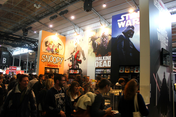 De fait, si la concurrence entre la Comic Con Paris et la Paris Comics Expo a polarisé beaucoup de discussion depuis un an, il faut bien saisir une différence fondamentale de mission. La Comic Con Paris est une manifestation « à l’américaine », c’est à dire que, non, les Comic Con d’outre-Atlantique ne sont pas centrées sur les seuls comics, malgré ce que le néophyte pourrait s’obstiner à croire. D’ailleurs l’essentiel du public semblait assez différent des festivals comics organisés depuis des années en France. Je pense entre autres choses au festival organisé sure Lille à partir de 1989 par Jean Wacquet… Il est bon de le rappeler car un certain nombre de médias nationaux hantaient les allées convaincus de découvrir la « toute première convention comics en France », ce qui a de quoi faire tousser les fans de comics. Mais ceux-là ne représentaient pas la majorité. Demandant à un cosplayeur déguisé en Fantomex (voir les photos) si l’on peut le photographier, celui-ci nous répond d’abord sur le ton de la plaisanterie qu’il ne se laisse prendre en photo que par les gens capables d’identifier son costume. Quand on lui répond du tac à tac, celui-ci répond, surpris « Ah ben… vous êtes seulement le deuxième de la journée à savoir qui c’est ! ». Le gros du public, donc, était venu chercher d’autres choses que des comics. Ce qui n’est pas forcément une mauvaise chose, dans le sens où visiblement les stands des éditeurs et des auteurs ont fait de bonnes affaires. Bonne chose aussi, la compartimentation de l’espace des conférences par rapport à l’allée centrale. Globalement, en dehors du mic-mac initial sur les dates, forçant la Paris Comics Expo à déménager (voir Comic Box #96), la Comic Con Paris n’est donc pas véritablement une concurrente. Elle se pose plus, en termes de manifestation geek, en face d’un Paris Manga & Sci-Fi Show mais avec encore des choses à apprendre.