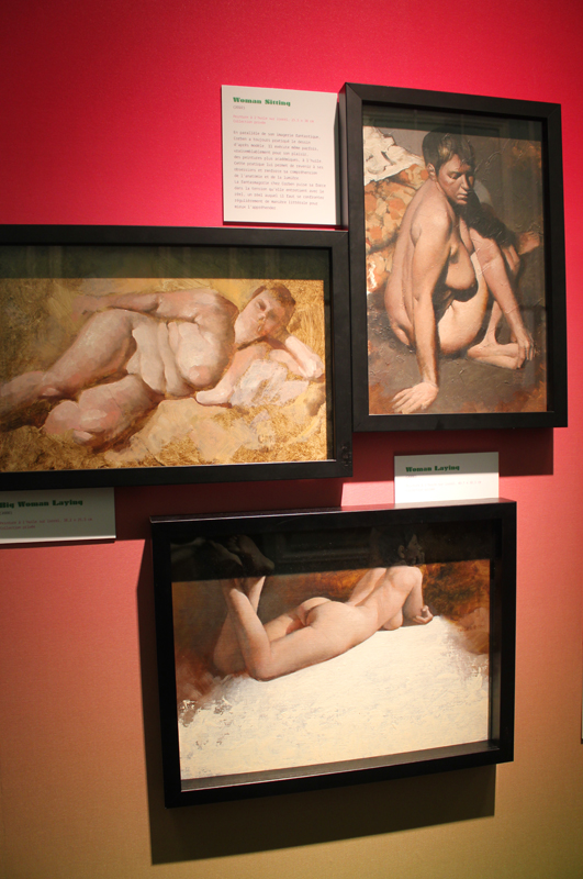 Un objet n’est rien sans son contexte, disions-nous, et comme pour mieux nous le rappeler, le Musée de la ville d’Angoulême était ce week-end un écrin idéal. Il fallait en effet d’abord traverser un rez-de-chaussée habité par des squelettes d’animaux préhistoriques avant de grimper trois étages et découvrir un autre monstre sacré. Richard Corben du début à nos jours, pour ainsi dire… Muscles gonflés et poitrines opulentes ? Oui, mais pas seulement. Et quand bien même, les premières pièces de l’exposition démontraient très bien, à travers quelques tableaux de jeunesse, que Corben en matière d’étude de nu n’a rien à envier aux grands maîtres de la peinture. Corben explose réellement dans les années 70, en pleine libération sexuelle, quand il s’agit de tourner le dos à des décennies de conservatisme, à revendiquer l’usage de son corps. Il créé des hommes forts mais aussi certaines femmes rebondies qui n’en sont pas moins de fortes têtes. Tout est exagéré, un peu comme si Michel-Ange s’était amusé à représenter Conan le Barbare. Mais cette fascination pour le corps, elle ne s’exerce pas sans un certain recul, une forme de caricature qui fait que l’artiste représente, dans le même temps la difformité et bien souvent des êtres hallucinés, médusés, qui auraient leur place dans le film Freaks.