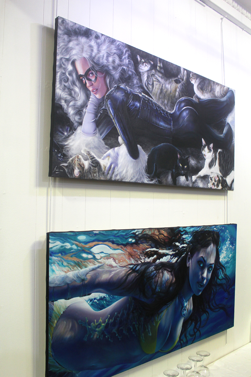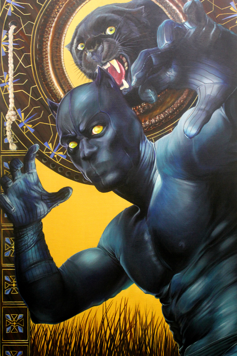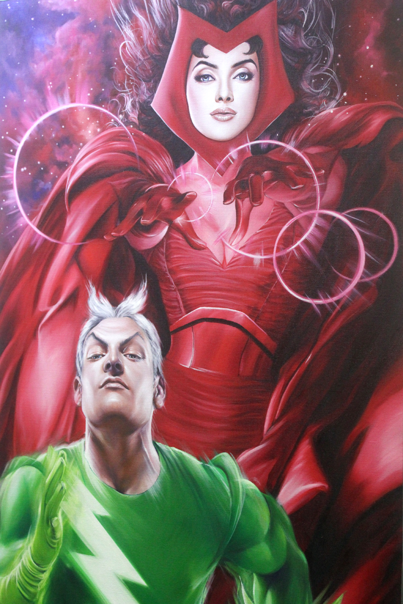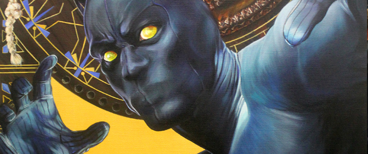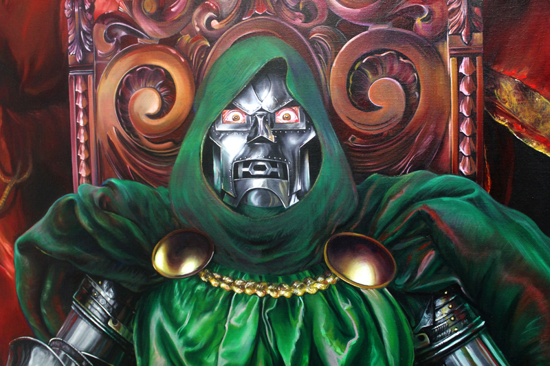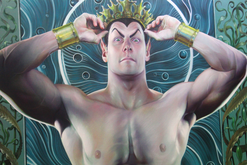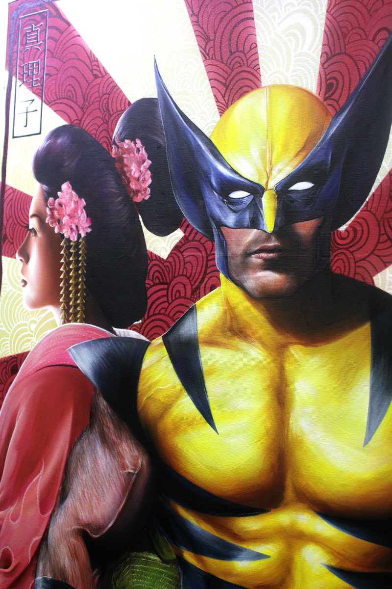 [FRENCH] Depuis jeudi Fred Ian expose à la galerie Carole Kvasnevski (Paris) des tableaux qui ont tous en commun d’être inspirés par les super-héros américains. Si dans l’année écoulée on a pu voir passer des faiseurs qui se contentaient de recopier placidement les maîtres de la BD américaine pour mieux tromper un public de l’Art contemporain qui ne connaît que rarement la source, ici pas de confusion possible. Attention. Ces Captain Marvel, Batman, Fantastic Four ou autres Quicksilver et Scarlet Witch viennent du vrai travail d’un passionné qui, s’il ne s’empêche pas de faire un clin d’oeil au Doctor Doom de John Byrne, créée réellement ses compositions, ses anatomies et ses rendus. Petit aperçu de l’exposition que vous pouvez découvrir à la galerie pendant quelques semaines…