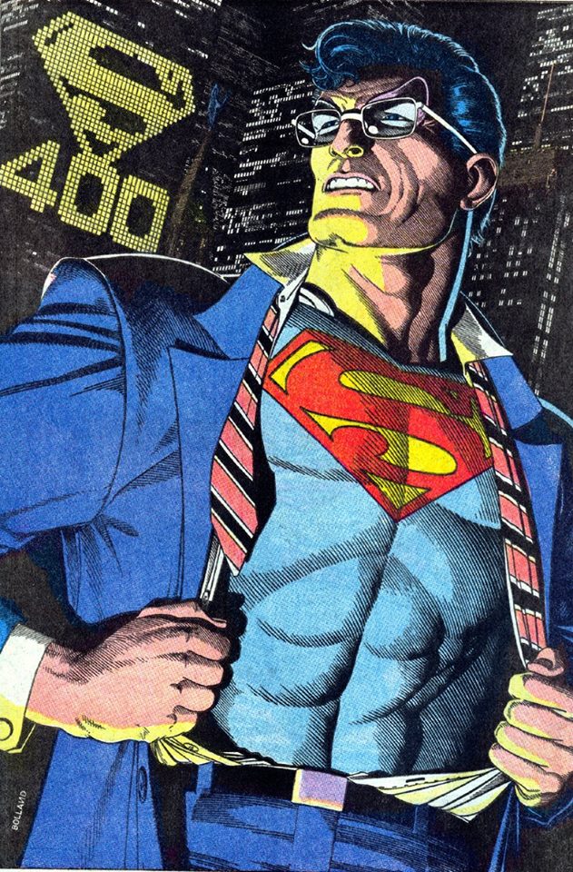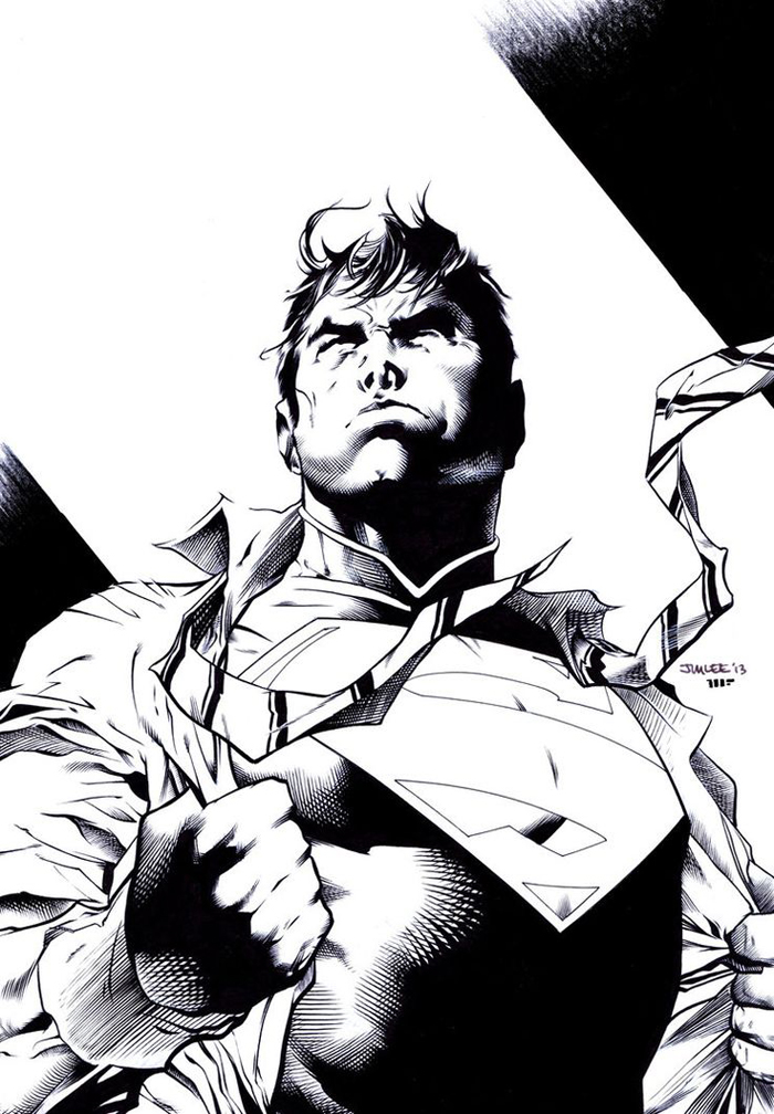 Mais qu’est-il donc ce Moi, lorsque n’étant plus cette lourde accumulation de déguisements sociaux-professionnels, il n’est pas encore cette force surhumaine transcendante ? Et qu’a-t-il donc de si important cet infime laps de temps transitoire, qu’il faille ainsi le souligner, s’y arrêter, le fixer comme un instant d’éternité ? C’est une illustration de J. H. Williams III qui, semble-t-il, colle au plus près du sens profond de ce motif iconique. Peignant Clark Kent ouvrant les deux pans de sa chemise, sa cravate déjà défaite et soumise au geste et au vent, le dessinateur choisit de montrer le personnage en noir et blanc et à contre-jour (le visage n’est qu’une ombre sans détail), réservant les seules couleurs au célèbre « S » de Krypton sur le fond bleu du collant. Clark Kent n’est presque plus là et Superman pas encore.