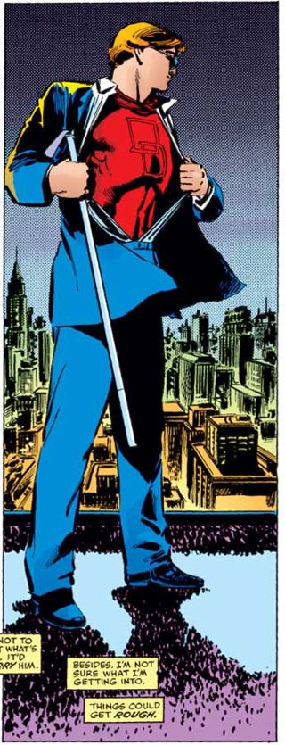 On oppose généralement la sphère publique à la sphère privée. Ce qui n’appartient pas à l’une appartient à l’autre et inversement. Ce regard binaire est pourtant incomplet. Il existe un troisième champ : la sphère intime. C’est celle du secret. On le garde pour soi ou on le partage avec des « intimes », précisément. Si être Journaliste (pour Clark Kent), étudiant (pour Peter Parker), avocat (pour Matt Murdock) relève de la sphère publique, et qu’être prétendant de Loïs (pour Clark), neveux de May Parker (pour Peter), fils du boxeur Jonathan Murdock (pour Matt) relève de leur sphère privée, être Superman, Spider-Man et Daredevil est leur sphère intime. Le super-héros est justement cet être étrange qui, quittant la sphère publique et la sphère privée pour investir sa sphère intime, expose cette dernière dans la sphère publique à nouveau. Mais une sphère intime sous protection (un peu comme l’artiste, finalement, qui exposant son intimité de manière codée le plus souvent, avance lui aussi masqué). Tout le monde verra Superman, Spider-Man ou Daredevil, sans savoir que derrière eux se cachent Clark Kent, Peter Parker et Matt Murdock. Sauf que nous parlons là au futur. Car dans le geste du dévoilement dont il est question ici, la transformation n’est pas encore achevée.