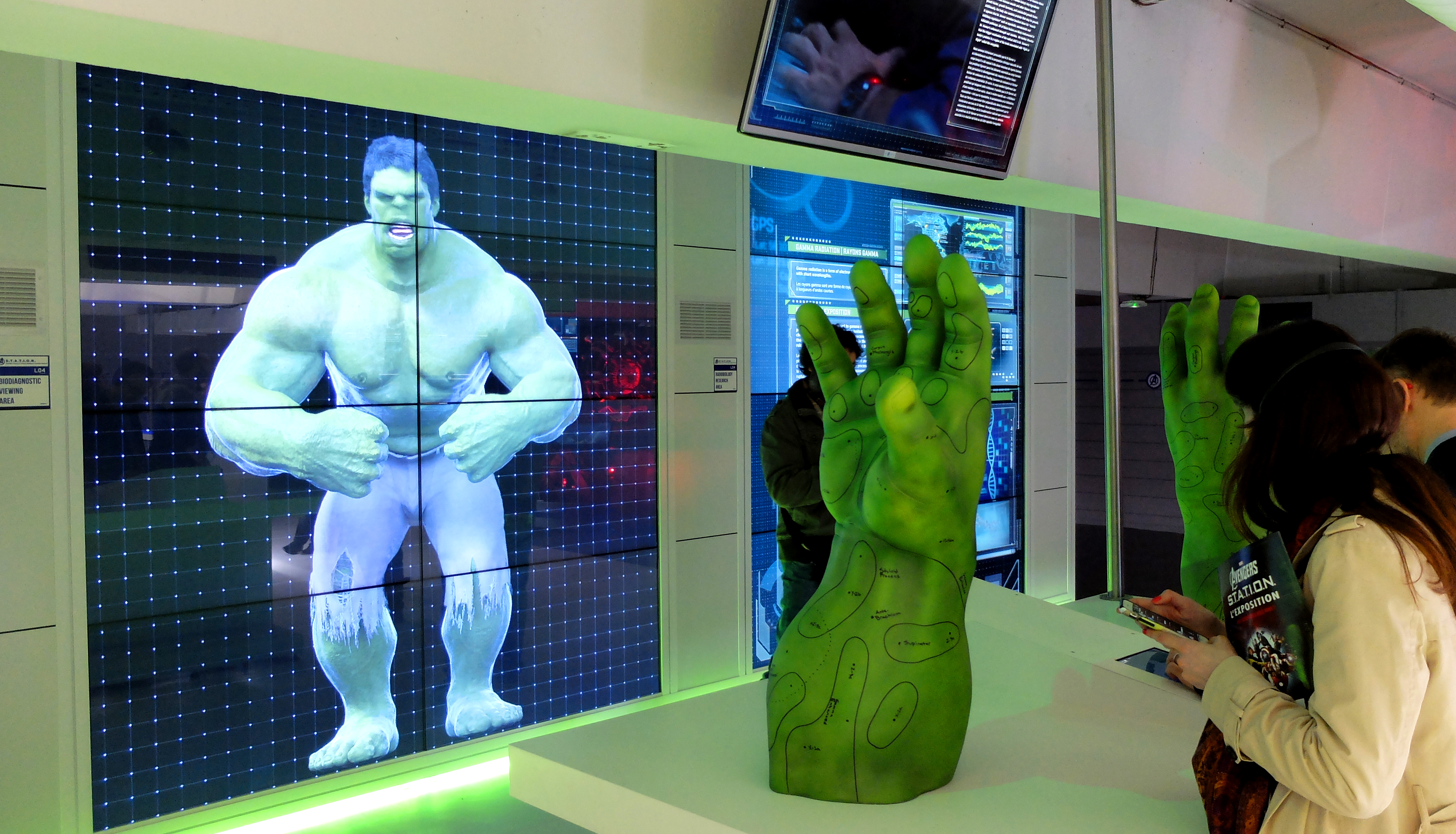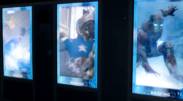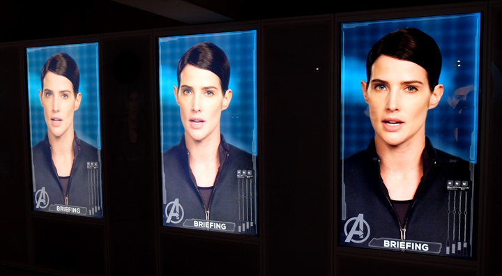 Dès les premières minutes, on est dans immergé dans le monde des Avengers. Une hôtesse du S.H.I.E.L.D. nous accueille et nous installe dans la salle de conférence présidée par Maria Hill. Après de brèves instructions, vous voici plongez dans les laboratoires des plus grands héros de la Terre. Vous passerez de personnage en personnages, pour étudier et tester vos connaissances. Grâce à une application dédiée (disponible sur iPhone et Androïd) sur votre smartphone ou via l’iPod confié par le S.H.I.E.L.D., vous devrez répondre à un questionnaire sur chacun des Avengers pour pouvoir passer de salle en salle.